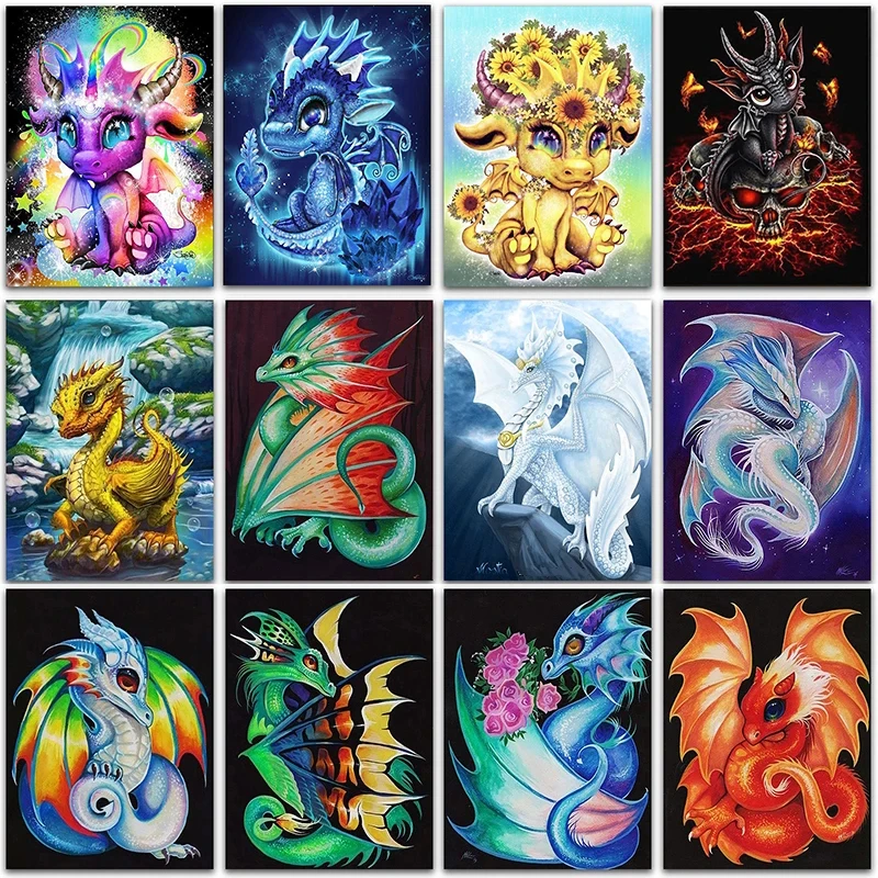 Набор для алмазной живописи, набор для алмазной вышивки крестиком с изображением животных, мультяшных драконов, квадратная мозаика, домашний декор