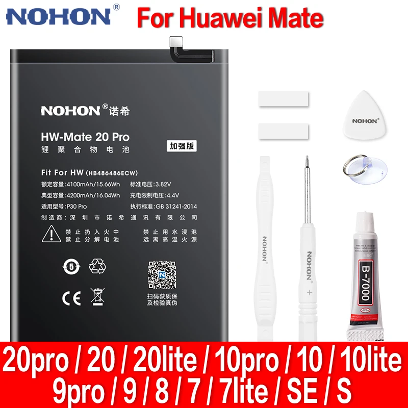 NOHON батарея Чехол для мобильного телефона Huawei Ascend Mate 20 10 9 Pro 8 Honor 7 Lite S SE Замена Bateria для НУА Вэй слава 6 Plus 7X V10 Мобильный телефон батареи