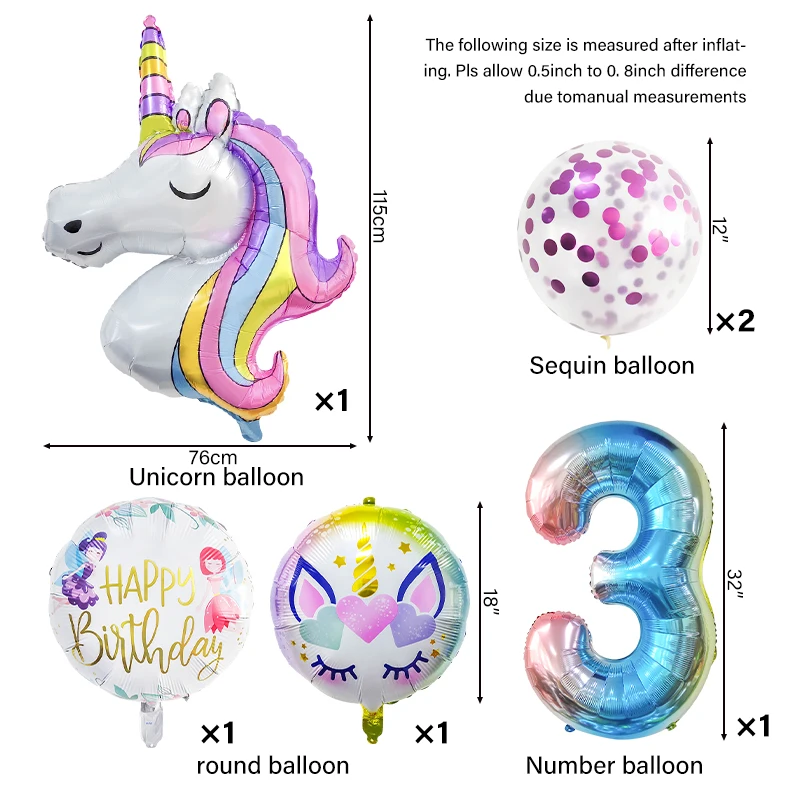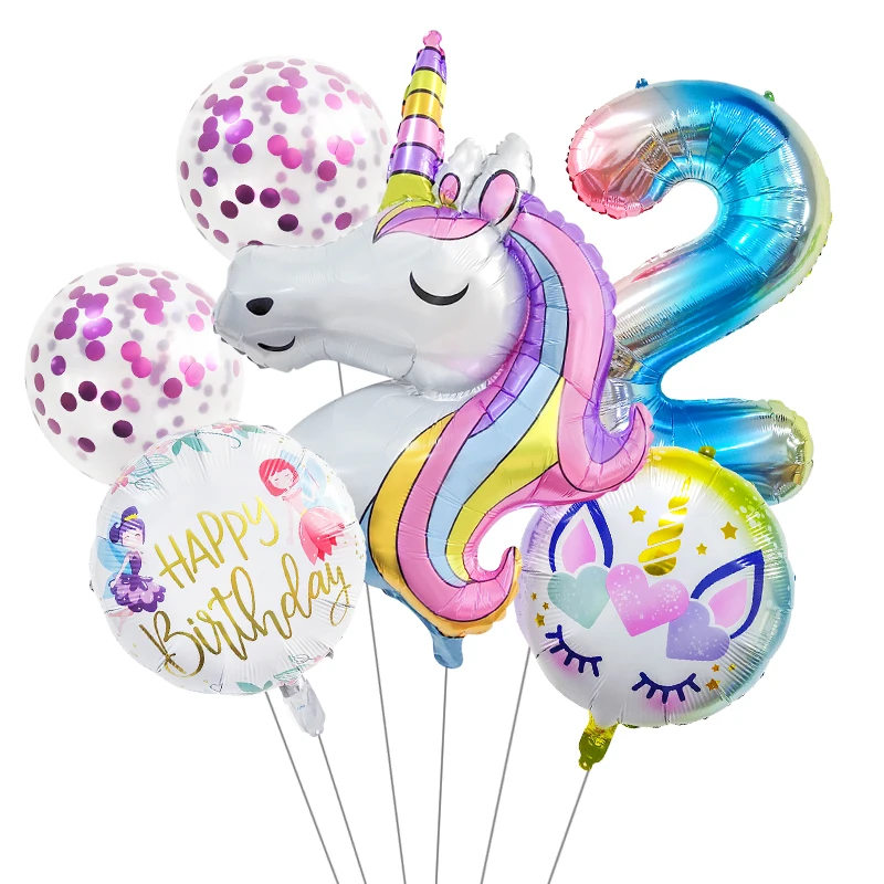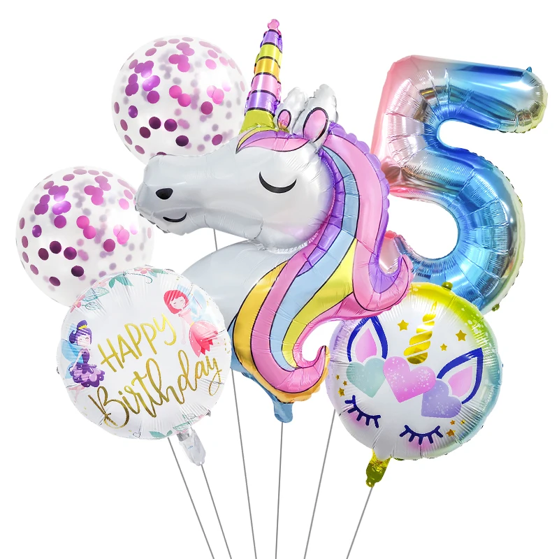 Украшение в виде единорога на день рождения, гигантский воздушный шар в виде единорога, флага для дня рождения, радужная кисточка, украшение для детского душа