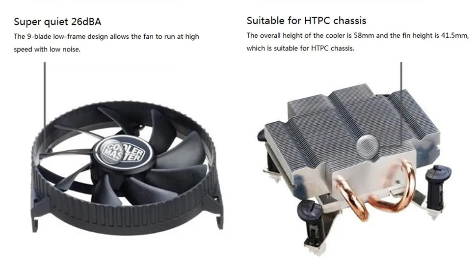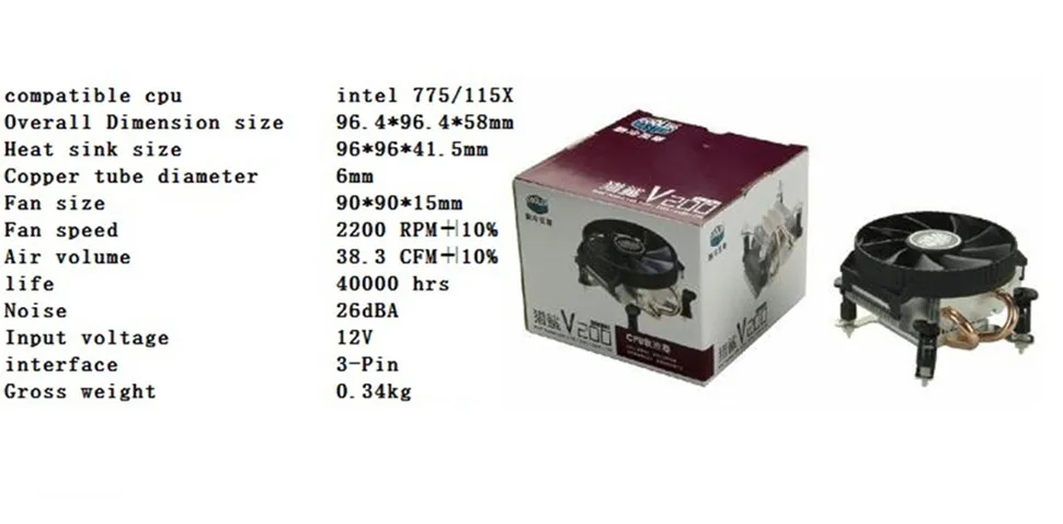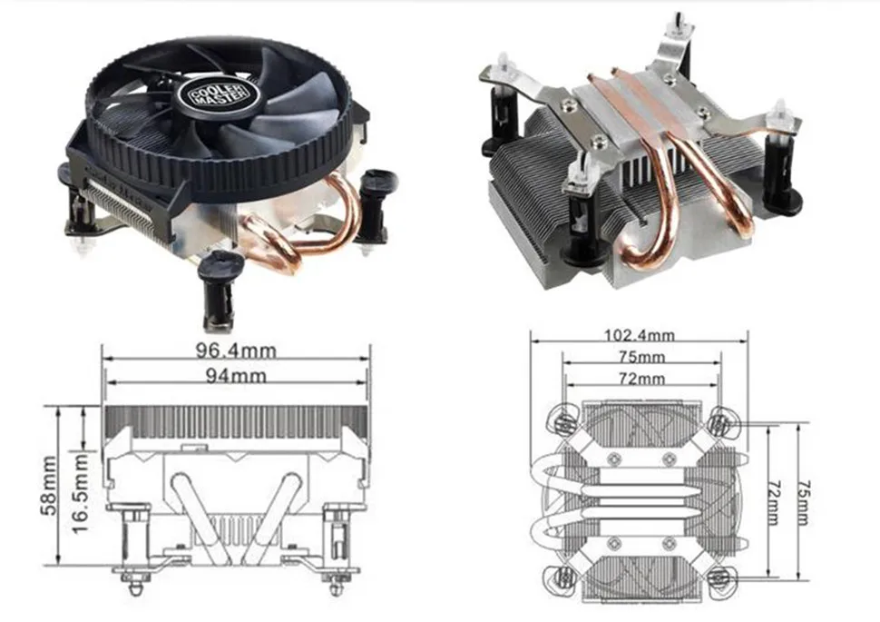 Кулер Master V200 TDP95W для ПК, радиатор с 2 тепловыми трубками, кулер для ЦП HTPC 90 мм, тихий охлаждающий вентилятор для Intel 775 1155 1156 1151 1150 M-ATX