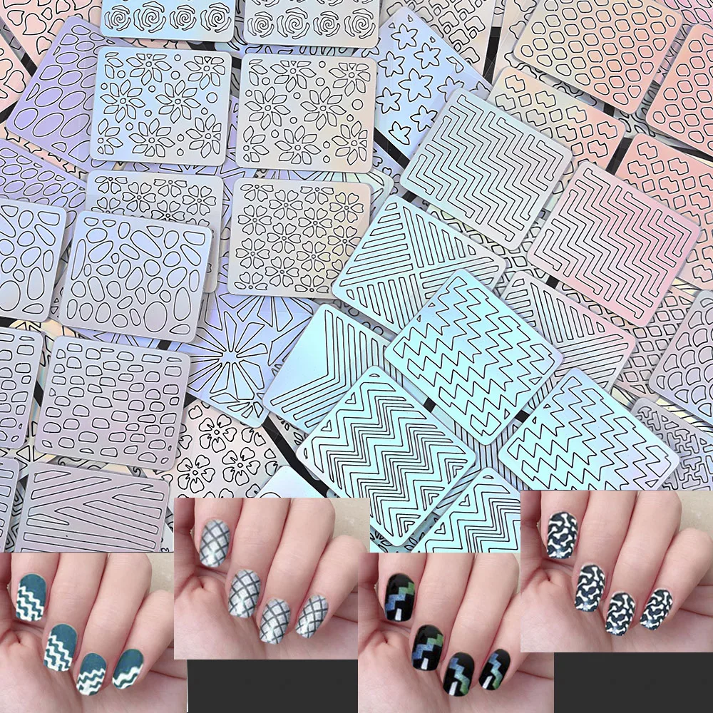 12 Стиль винил для ногтей Полые нерегулярные сетки трафарет полоса линии ногтевое искусство, переводные наклейки 3D маникюрные Типсы DIY украшения инструмент