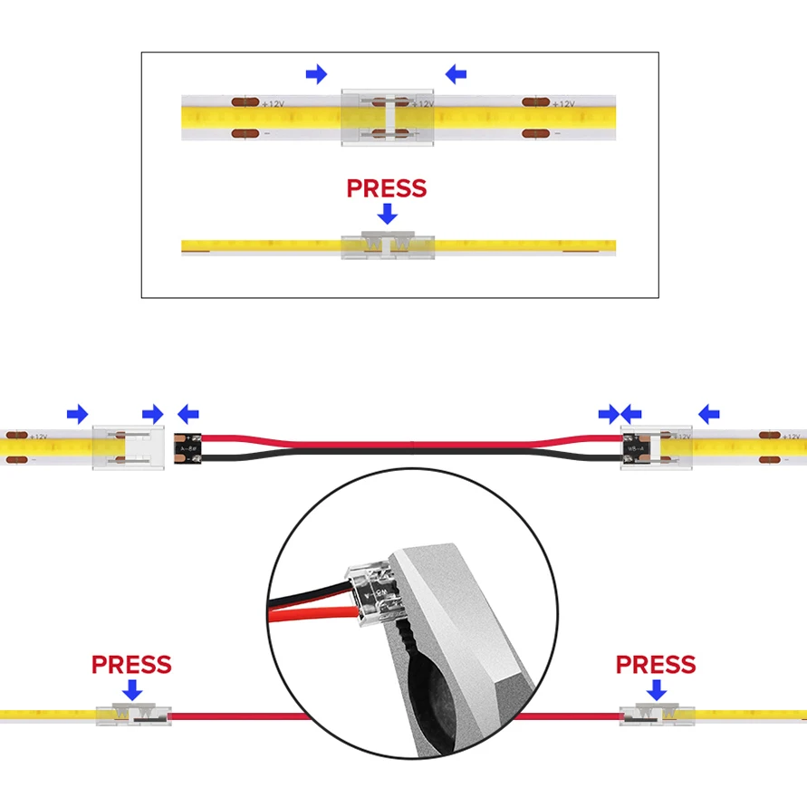 10 шт.лот Высококачественная Светодиодная лента COB с быстрым разъемом, 2 контакта 8 мм для полосок FCOB, Светодиодная лента без пайки, легкое соединение