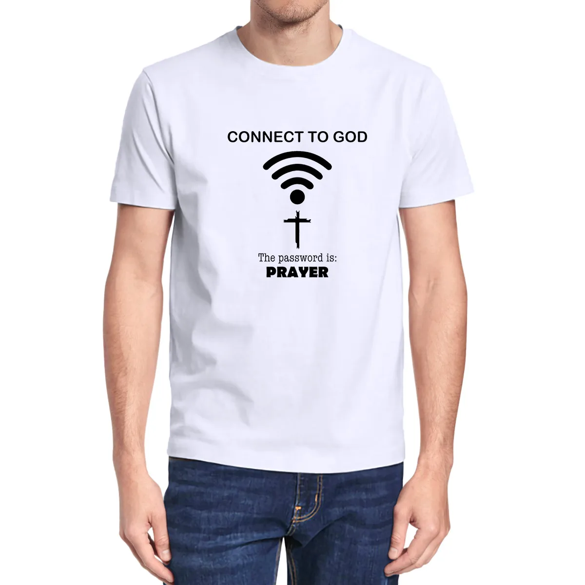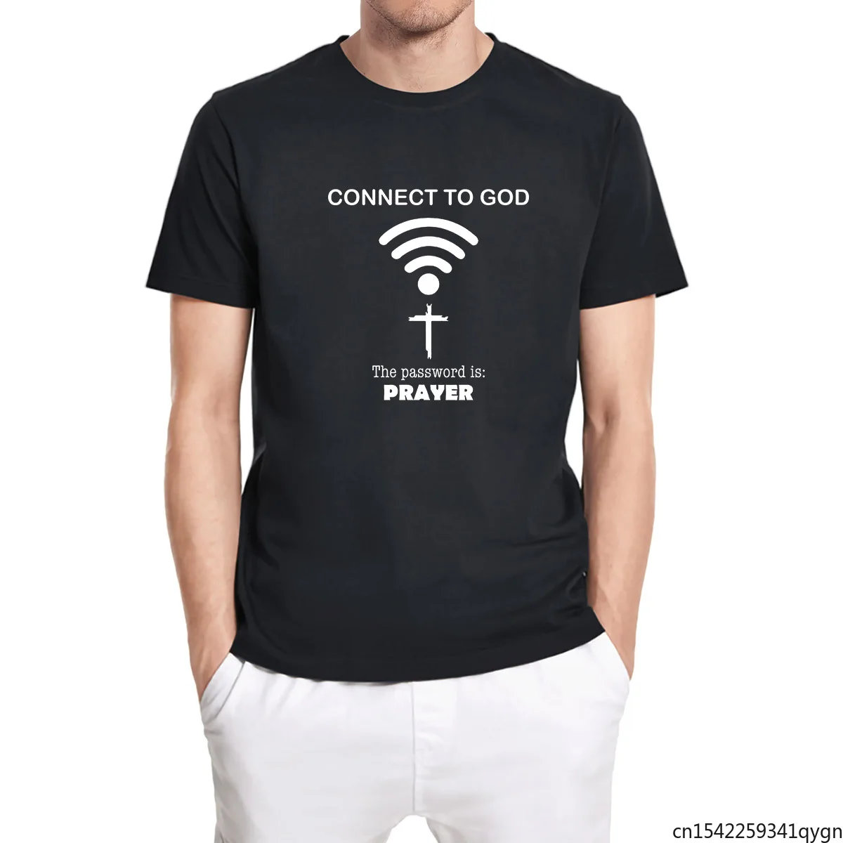 Футболка мужская с надписью соединенный с Богом, повседневный свитшот с короткими рукавами, с молитвенным христианским подарком, унисекс