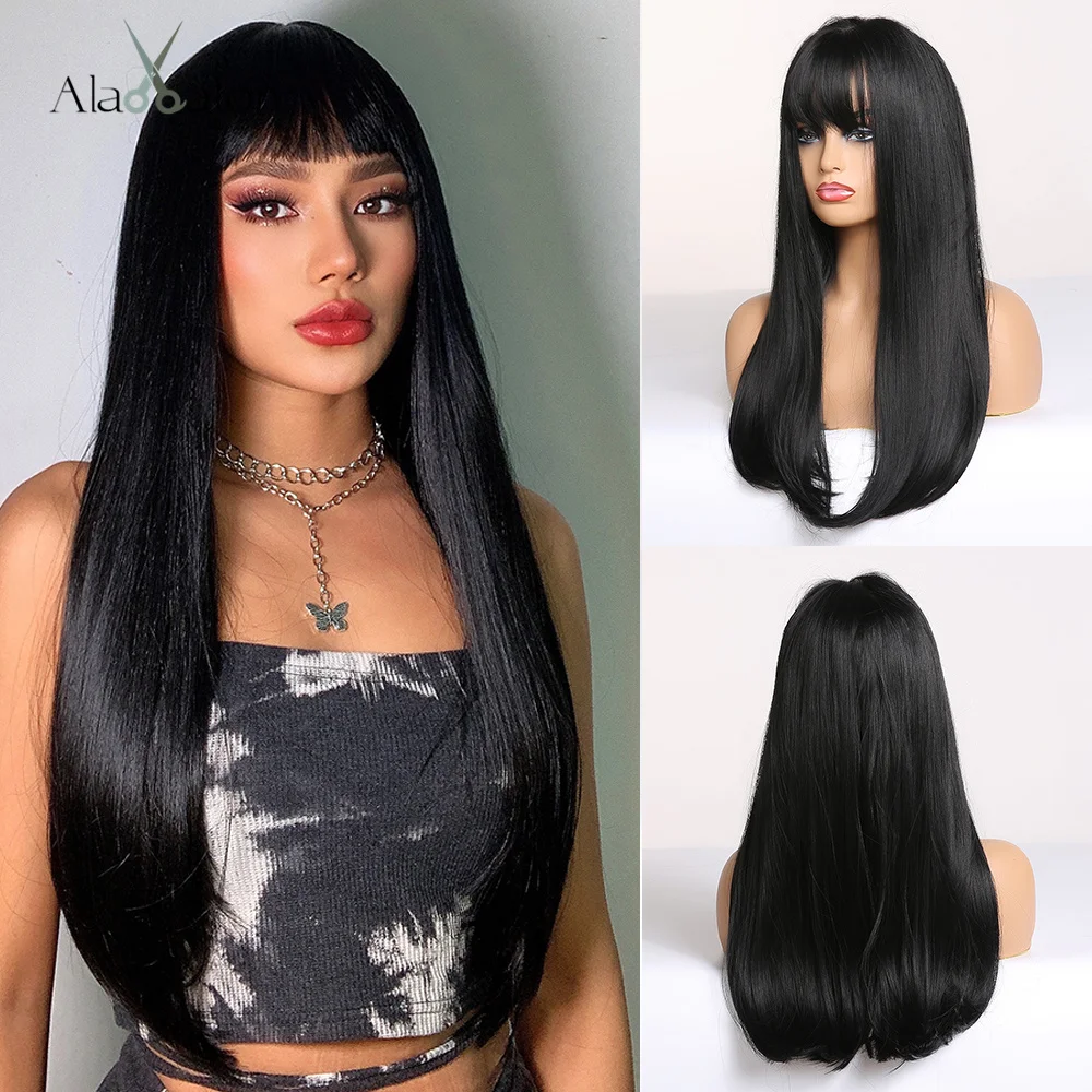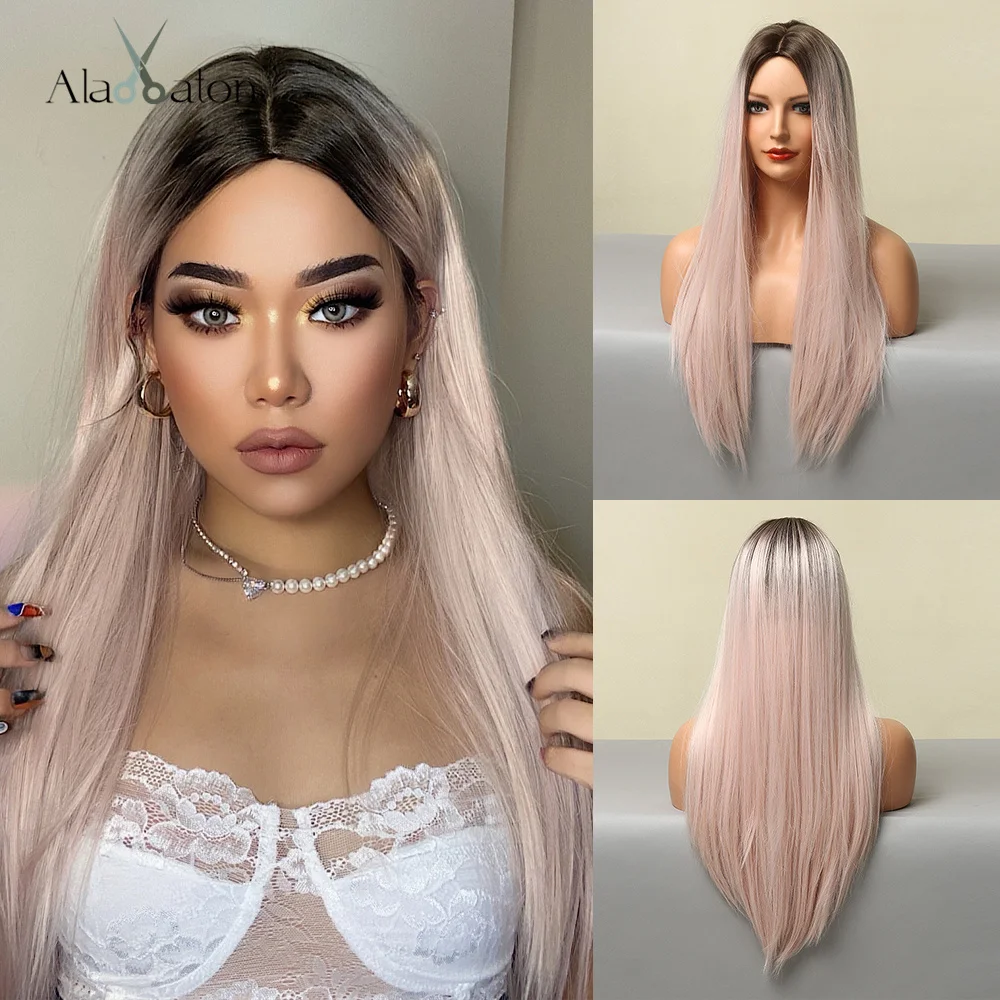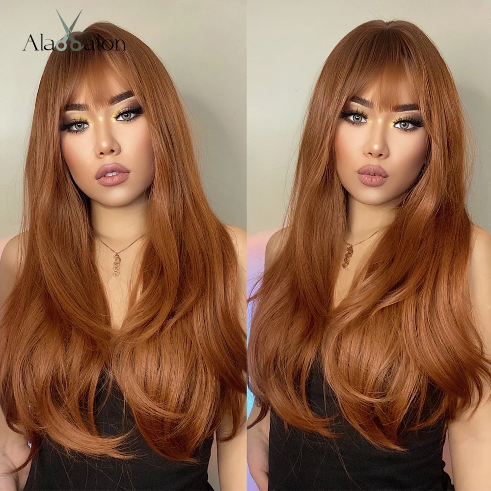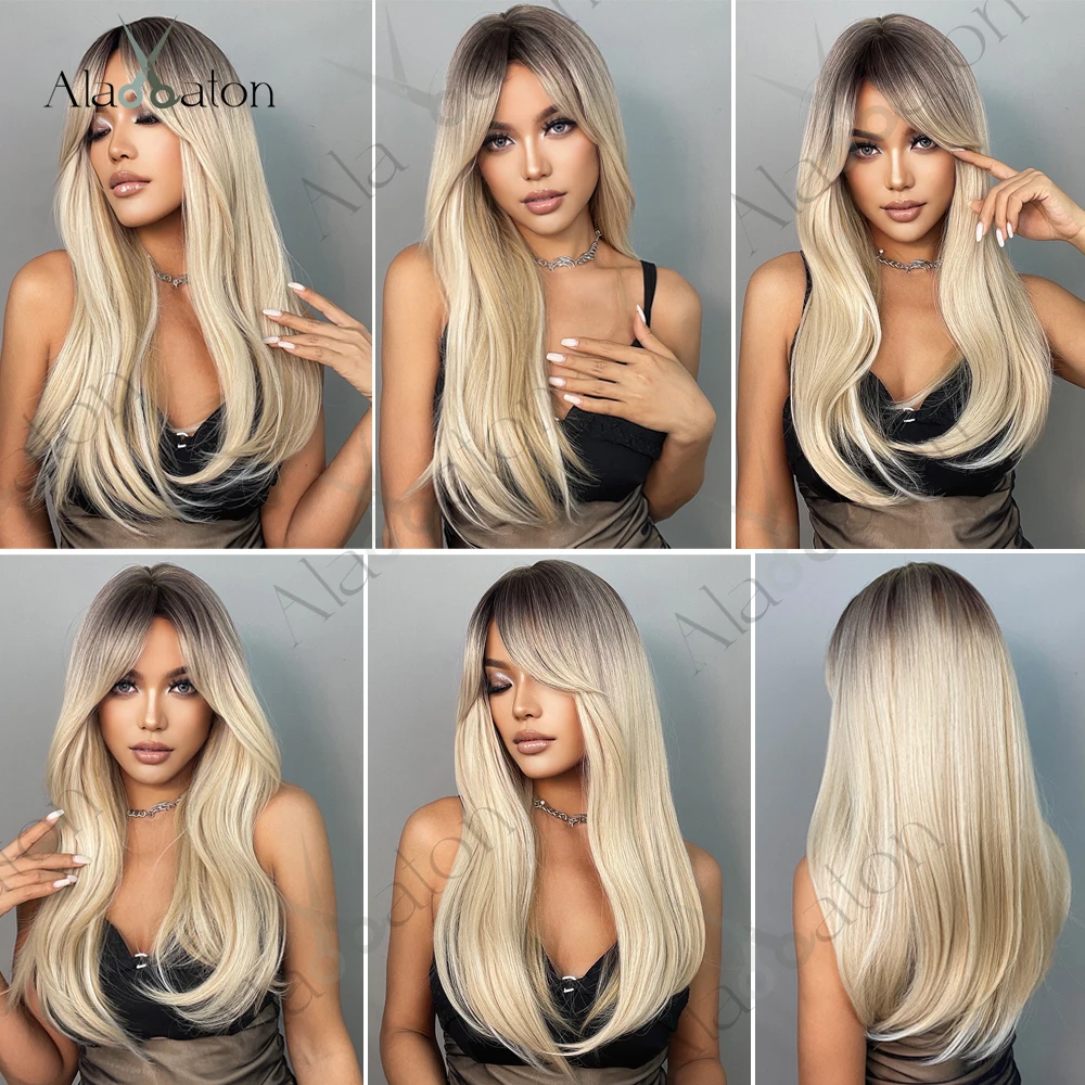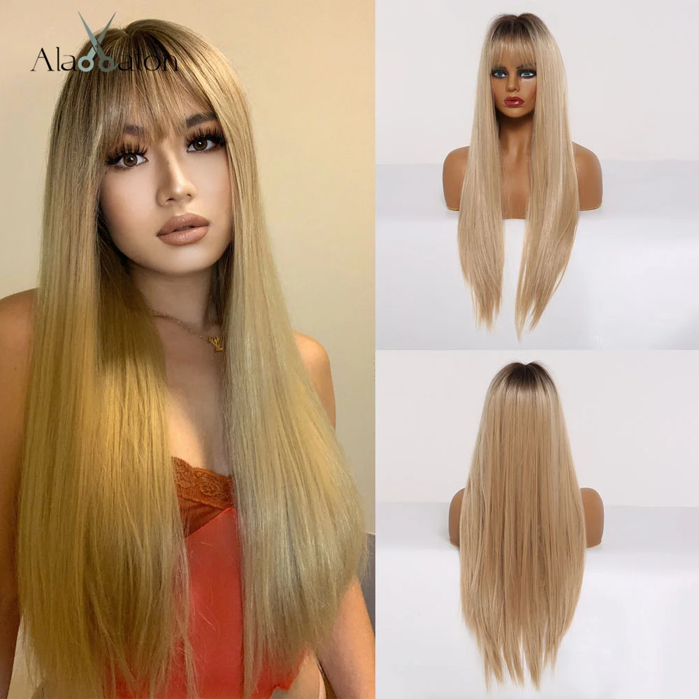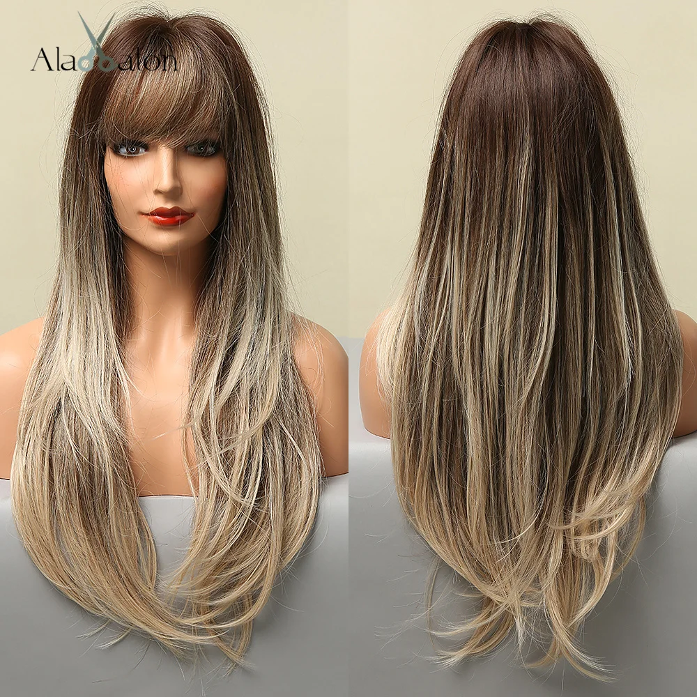Длинные прямые синтетические парики ALAN EATON с эффектом омбре, коричневый, светлый, с боковой челкой, Косплей парики на каждый день для женщин, термостойкие искусственные волосы