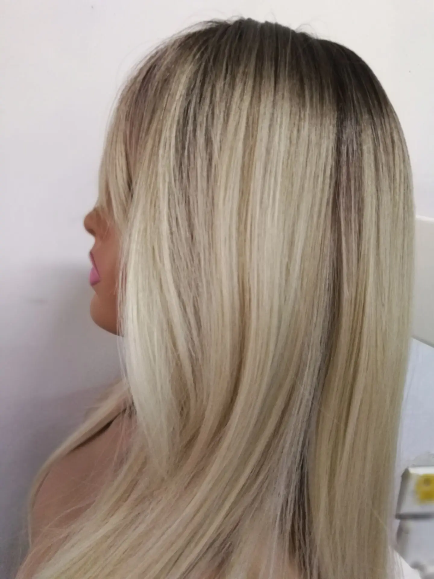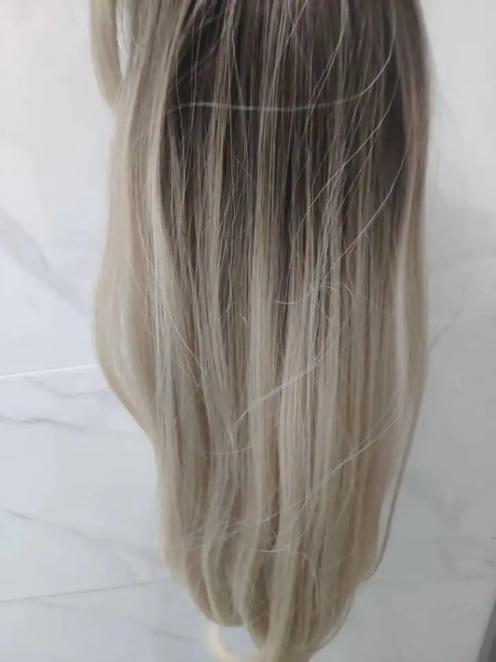 This is the highest quality wig I have ever seen. The hair is beautifully colored, the most important thing is that the parting is made in a naturalistic way, the bangs are long, and it looks very natural. There is a lot of hair, but at the same time it is light. I ordered a lot of wigs on Ali, but I had to return, but this one is super!