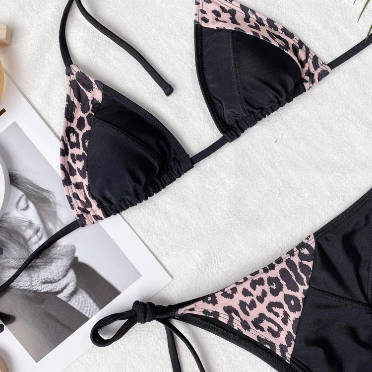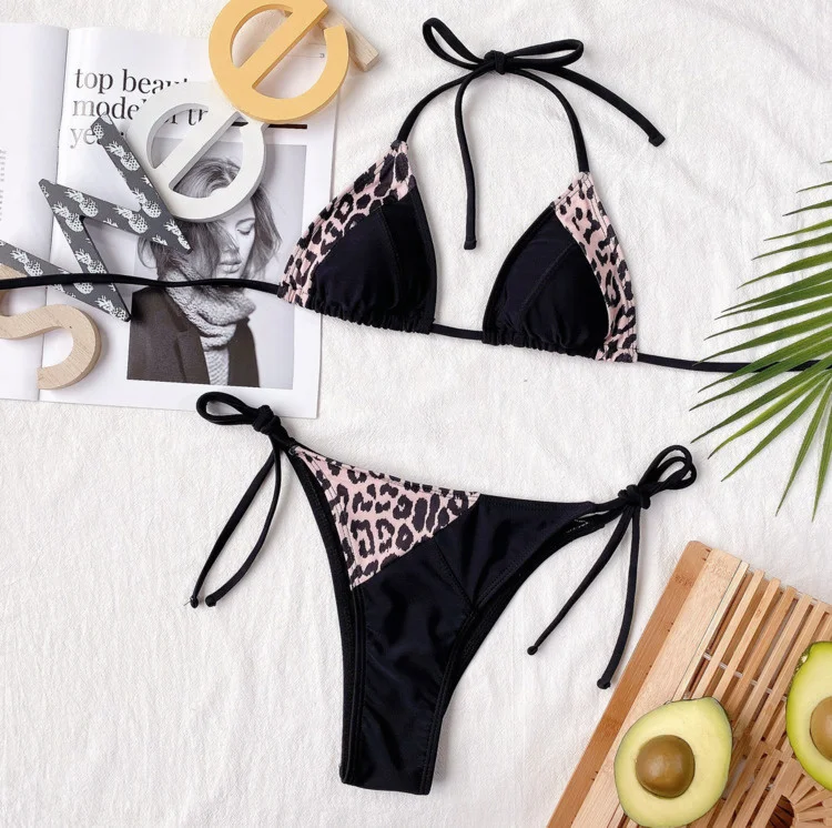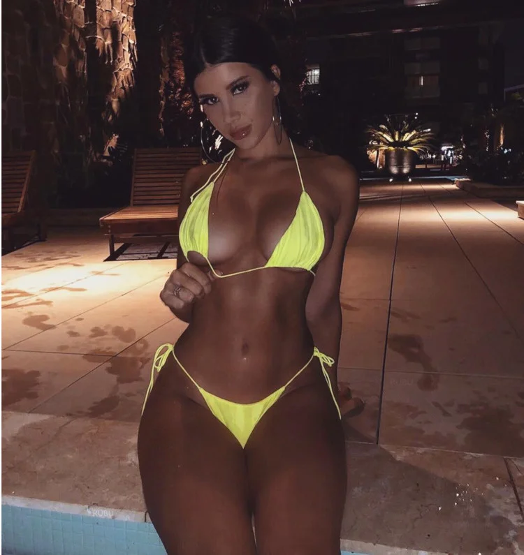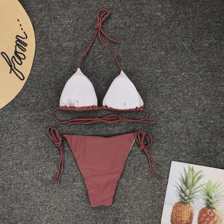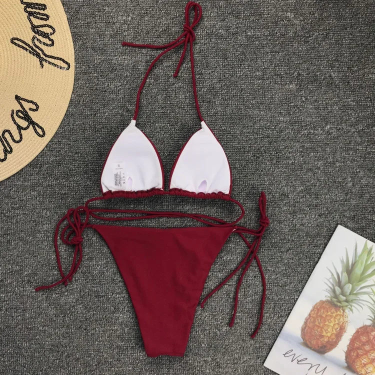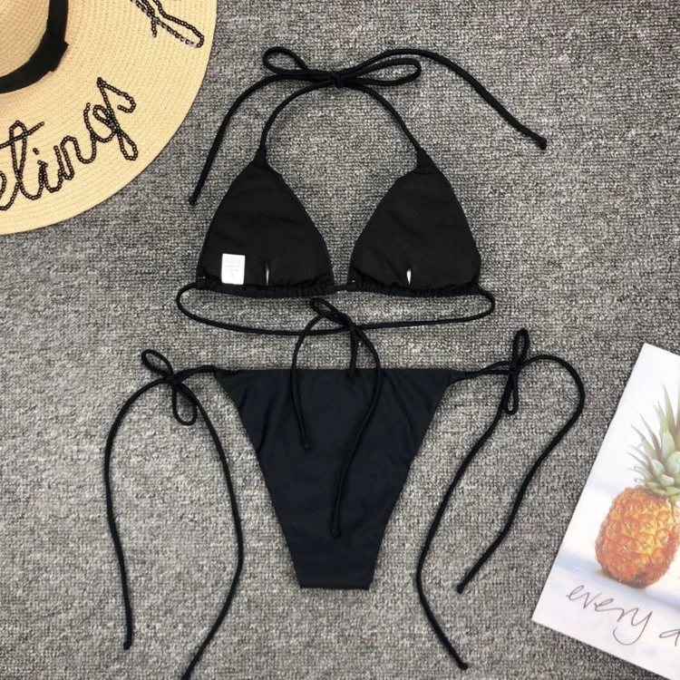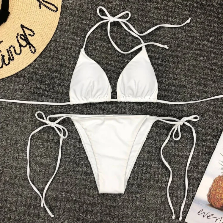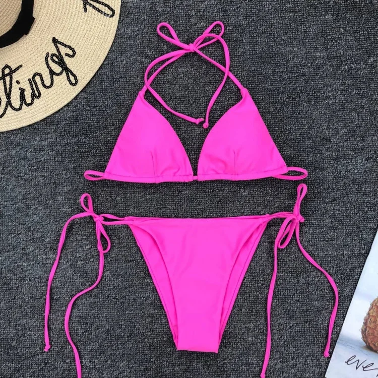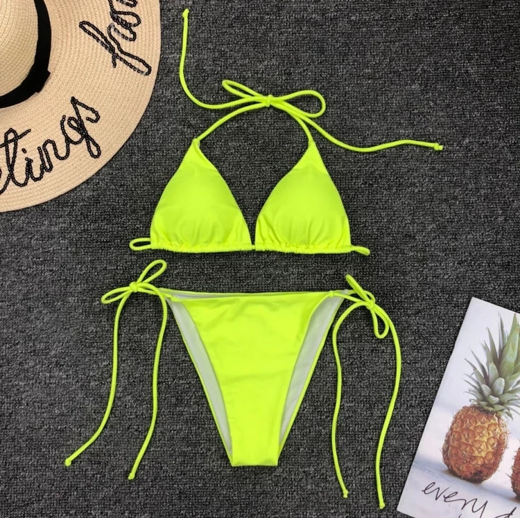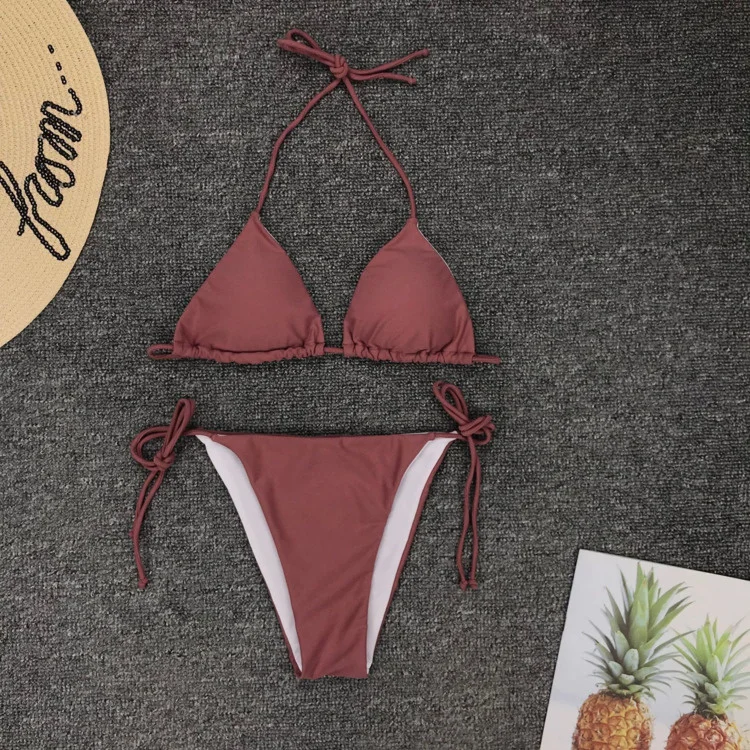 Однотонное Бандажное бикини, женский сексуальный купальный костюм с лямкой на шее, купальник пуш-ап, женский летний пляжный купальник из двух предметов