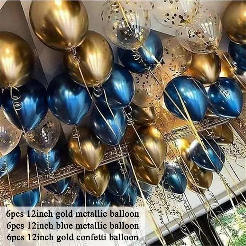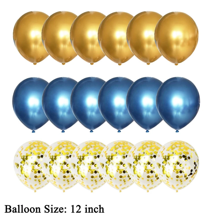Латексные воздушные шары с конфетти, хромированные, золотистые, синие, 1812 дюймов, украшения для дня рождения, для детей и взрослых, 16182130405060, для мальчиков и мужчин