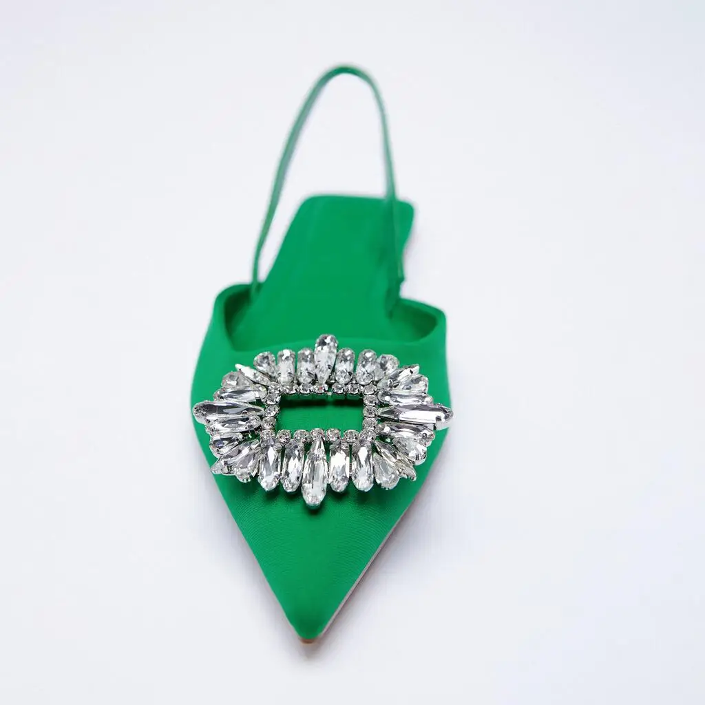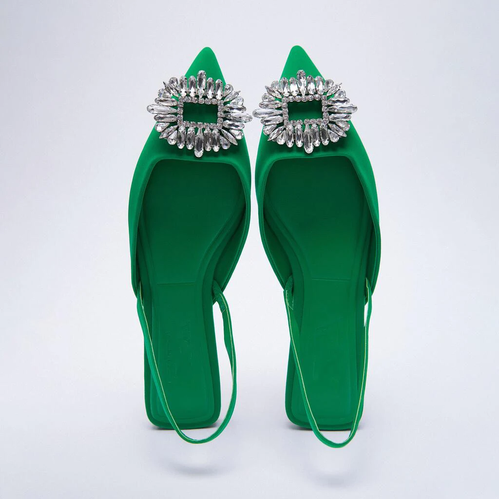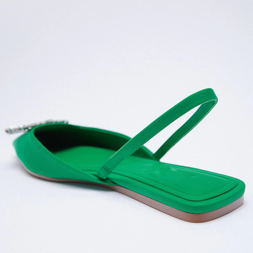 Женские мюли на плоской подошве Za, зеленые модные туфли с острым н...