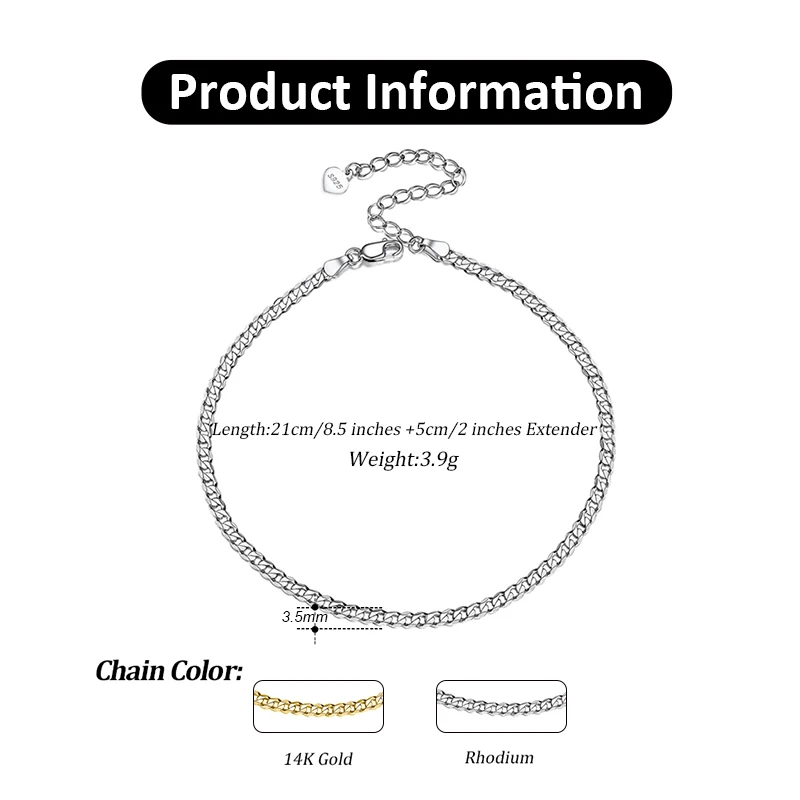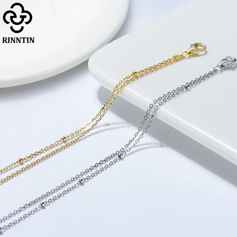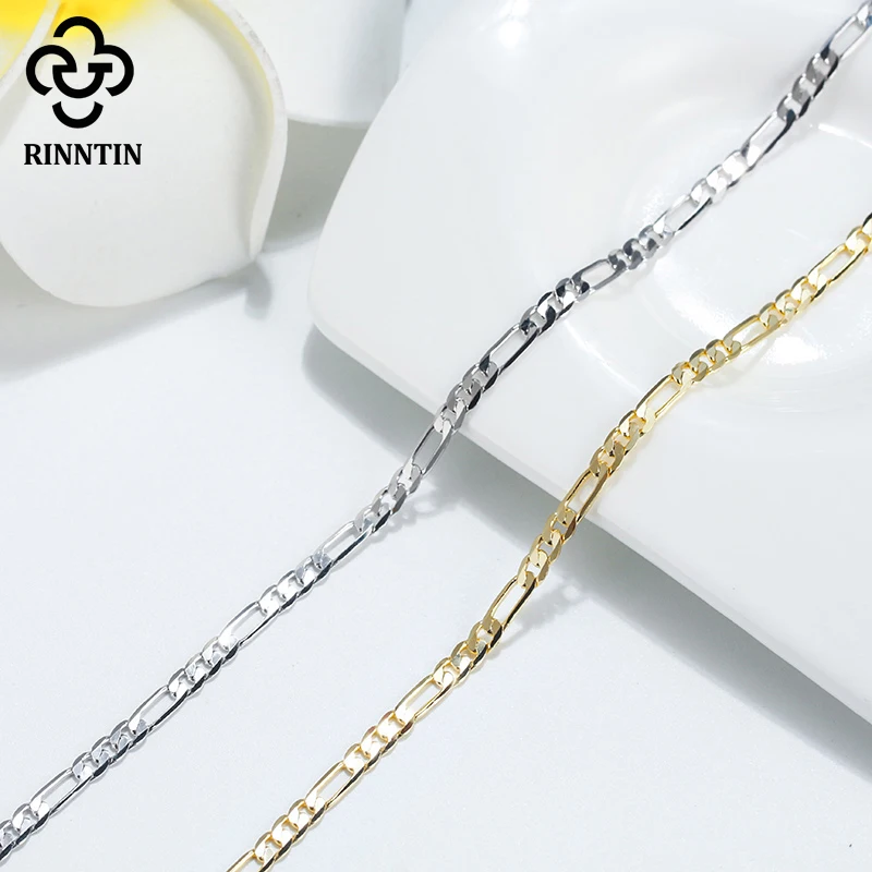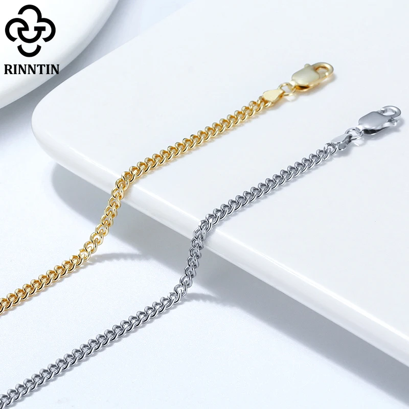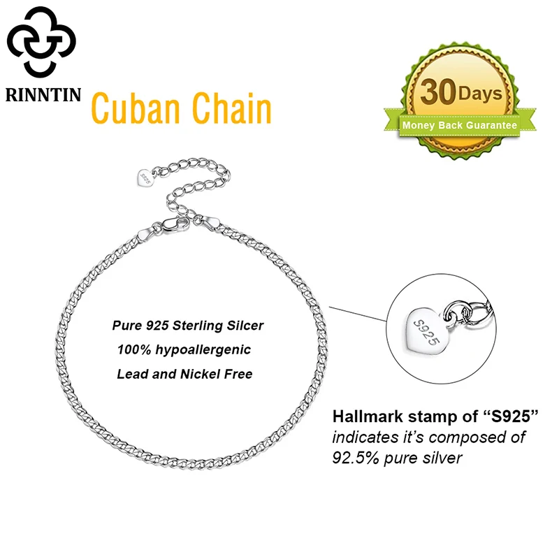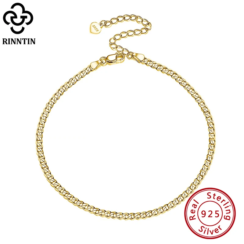 Ножные браслеты Rinntin из стерлингового серебра 925 пробы с кубинской цепью для женщин, модные регулируемые браслеты под золото 14 карат, ремешки на лодыжку, ювелирные изделия SA11
