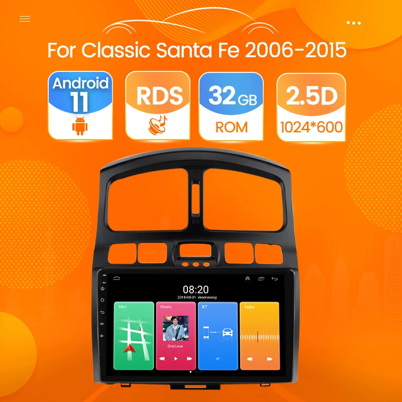 Автомагнитола для Hyundai Classic, Santa Fe 2005, 2006-2014, 2015, 2DIN, Android 11, 9 дюймов, GPS, Wifi, управление рулевым колесом