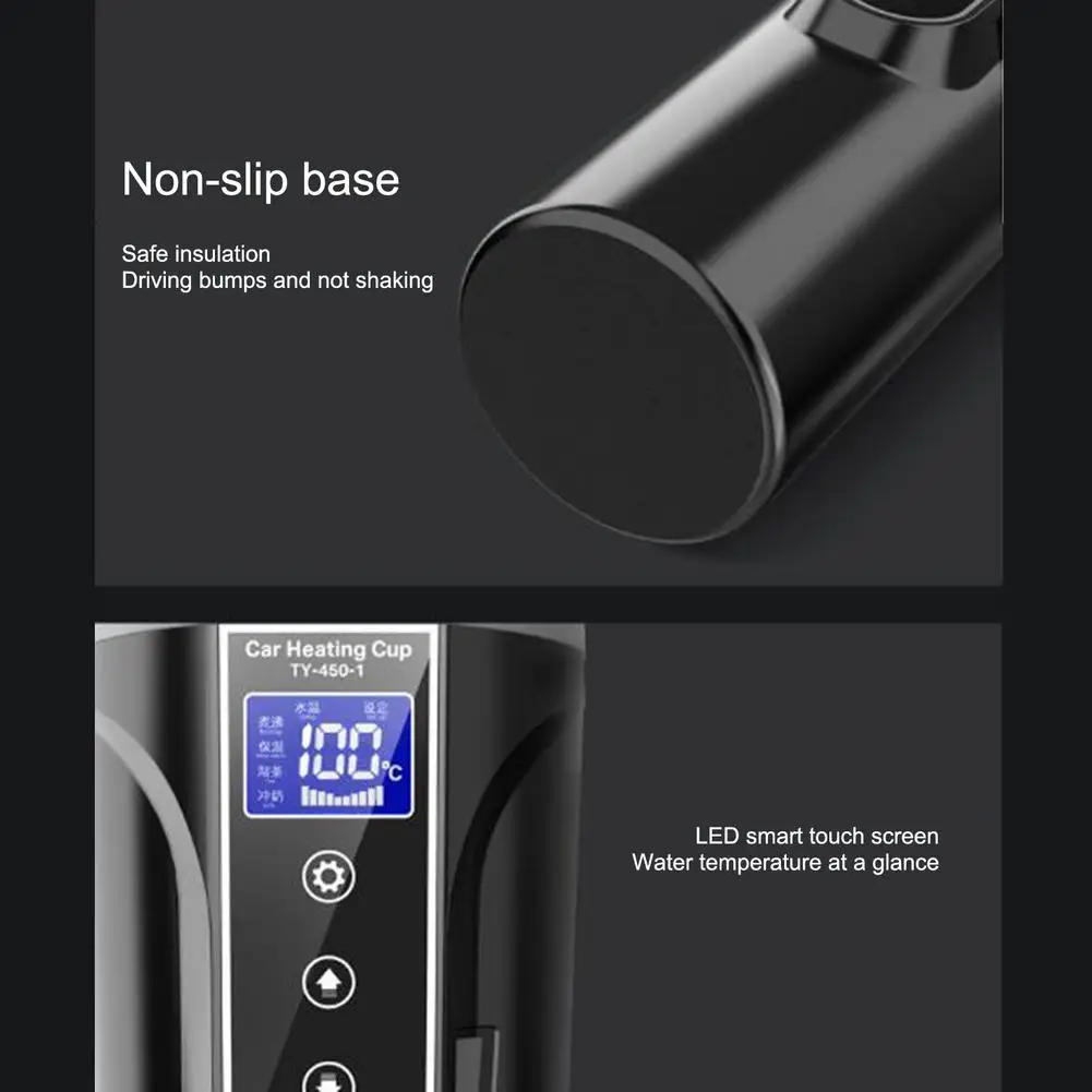 Описание;1. Новая умная Автомобильная нагревательная чашка, интегрированная водонепроницаемая, без утечки воды, отключение питания, также может держать в течение 5-7 часов, контролируемая постоянная температура, 4 функции: кипячение, сохранение тепла, чай, молоко, интеллигентая (ый) идентификации 12V/24V Напряжение универсальной (автомобиля 12V для грузовиков 24V), Двойной скоростной режим с высоким током и низким током решает проблему, которую нельзя использовать моделям с защитой от тока.2. 2 цвета: черный и белый, по желанию. Хорошая ручная работа.3. Крышка может быть повернута на 270 °, чтобы сделать питье более удобным, более безопасным в использовании, сенсорные звуковые кнопки.4. ЖК-дисплей высокой четкости, автоматическая сигнализация для остановки нагрева при кипении, порт питания расположен на средней стороне корпуса чашки, который идеально решает проблему многолюдного пространства, занимаемого шнуром питания старого держателя чашки.5. Нижняя Нескользящая конструкция, оснащена чайным сливом, наслаждайтесь здоровой и чистой кипящей водой.Особенности:1. Быстрое нагревание/умный сенсорный экран/длительное сохранение тепла.2. Двойная мощность/Двойное Переключение напряжения.3. Подходит для большинства моделей на рынке.4. Решить проблему ограничения тока некоторых моделей прикуривателя.Спецификация:Название: автомобильная электрическая нагревательная чашкаНапряжение: 12 В/24 В Интеллектуальное распознавание напряжения и токаЦвет: Мудрость черный/Афины белыйМатериал: внутренняя пластина из нержавеющей стали марки 304, корпус чашки из поликарбоната, крышка чашкиРазмеры (приблиз.): Высота 22,5 см/8.86in, нижний диаметр 6,5 см/2.56in, длина кабеля 1,25 м/0.49inНоминальное напряжение: 75-90 Вт (Высокий режим HI и низкий режим LO регулируются двумя передачами)Емкость: около 450 млВремя кипения: около 25 минут до кипения 100 °Упаковочный лист:Электрическая нагревательная чашка * 1