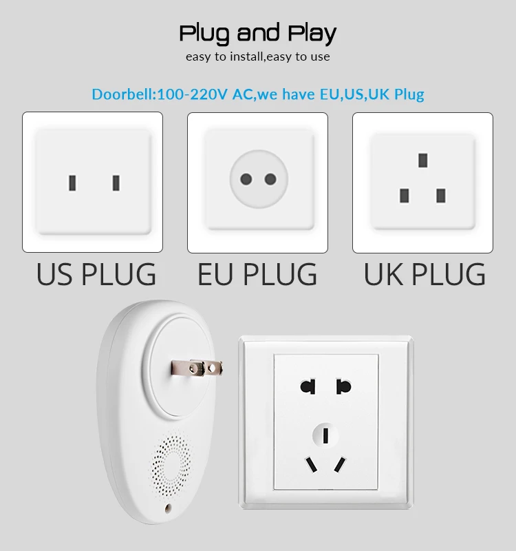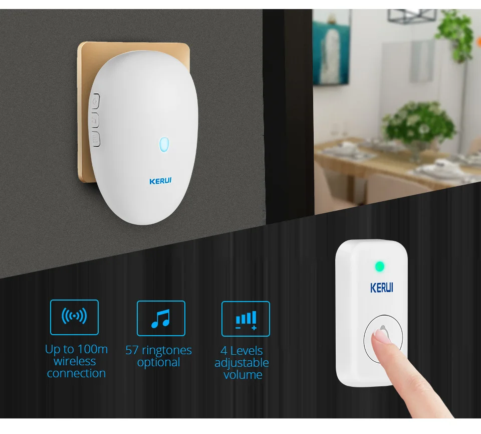 Этот Дверной звонок имеет новый дизайн, четкие мелодии звонка, до 57 музыкальных треков на выбор, 4 уровня регулировки громкости, основной блок имеет функцию памяти, Сигнал звонка для каждого запуска устанавливается, когда дверной звонок выключен в последний раз, хост может установить кнопку дверного звонка, чтобы воспроизвести фиксированный тон дверного кольца.Хост дверного звонка и кнопка дверного звонка можно кодировать по беспроводной сети. Подходит для виллы, клубов, центров отдыха, отелей, гостевых домов, семей, офисных зданий, конференц-залов и других мероприятий.