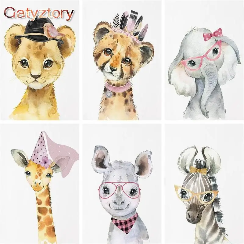 GATYZTORY наборы для самостоятельного рисования по номерам для взрослых и детей, Мультяшные животные, масляные краски, художественные наборы, современные искусства, самостоятельная раскраска от Nu