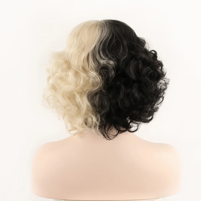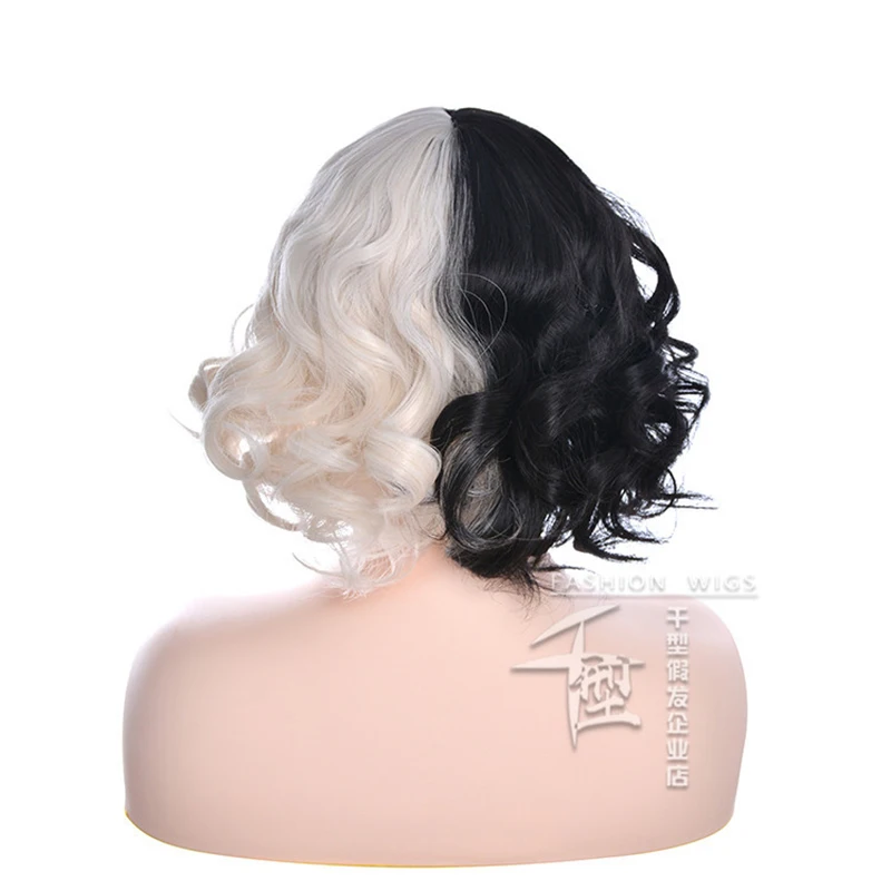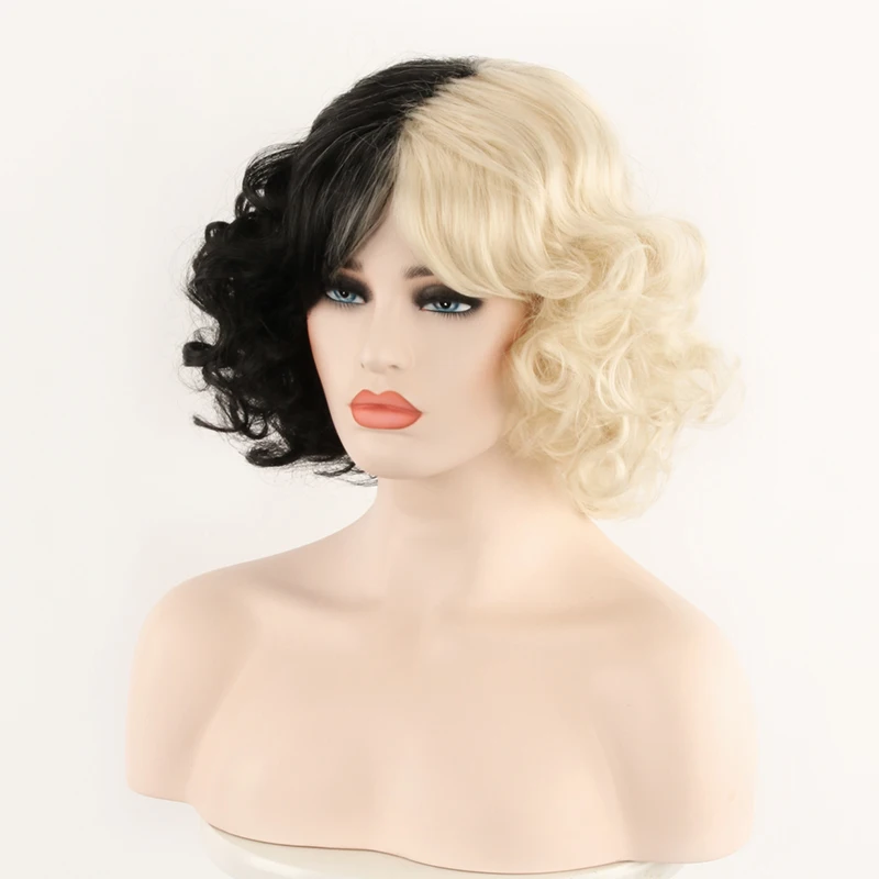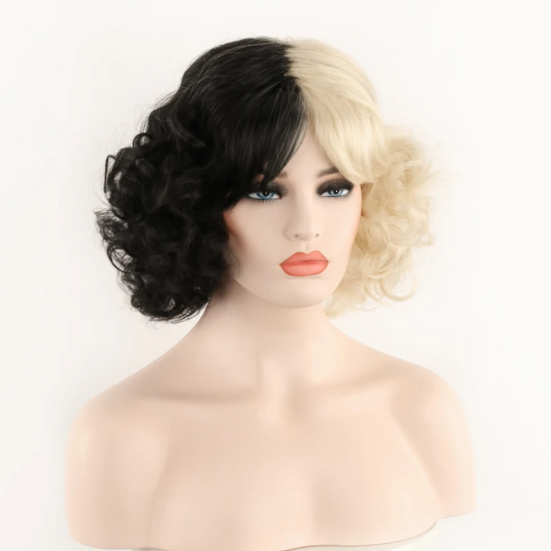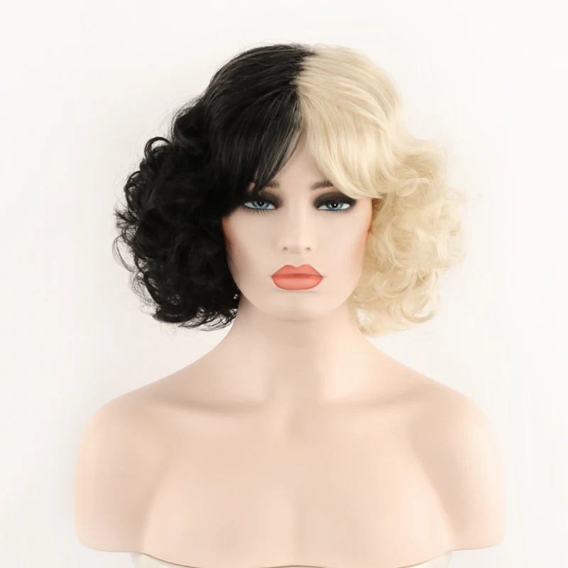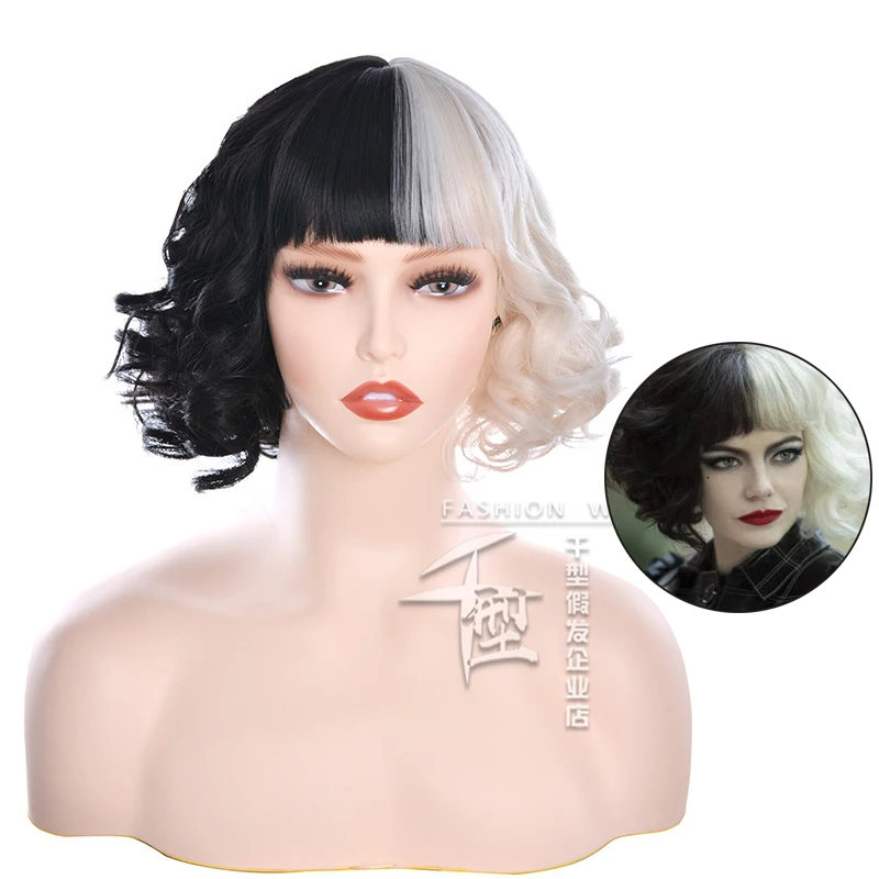 Парик женский короткий кудрявый из термостойких синтетических волос, модный головной убор из фильма Cruella de Vil, для косплея