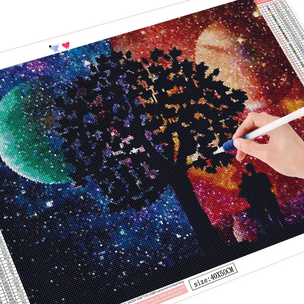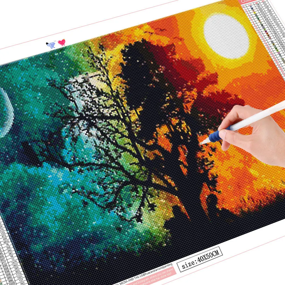 HUACAN Алмазная Картина новый пейзаж дерево 5D DIY Алмазная вышивка Солнце Луна картины Стразы мозаика ручной работы подарок