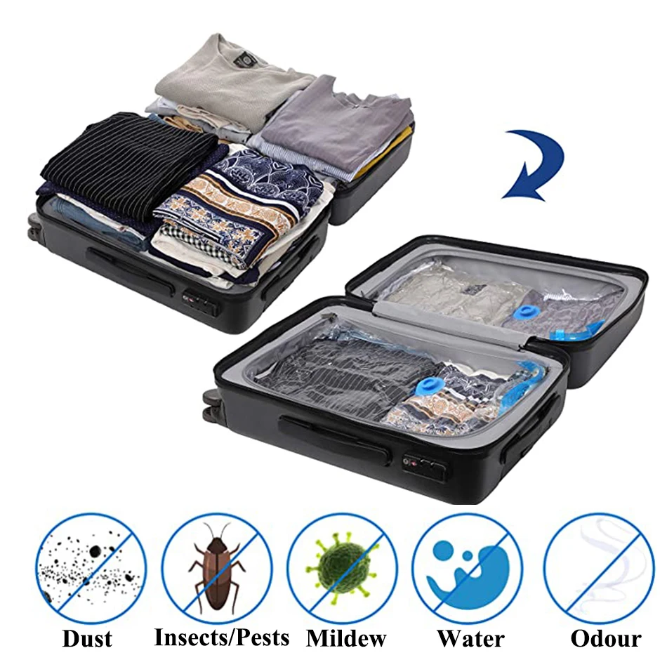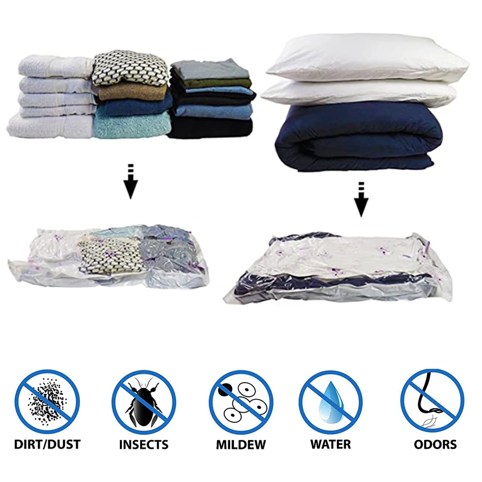 Храните свои громоздкие или несезонные предметы и Увеличьте пространство в вашем доме с помощью оригинальных воздухонепроницаемых мешков. Каждый Вакуумный пакет для хранения разработан с уникальным двойным замком и тройным турбо-клапаном, чтобы не допустить попадания или выхода воздуха после герметизации мешка.Храните свою одежду и постельные принадлежности в нетронутом состоянии, сохраняя ваши товары в наших водонепроницаемых сумках для хранения. Идеально подходит для использования дома, на даче или на ходу-Наши вакуумные пакеты отлично подходят для максимального увеличения места для багажа, когда вы хотите путешествовать легче и эффективнее.Увеличьте свое живое пространство и одежду с помощью оригинального решения экономии пространства.