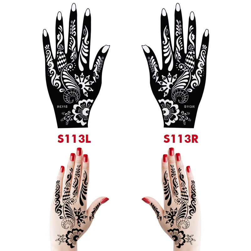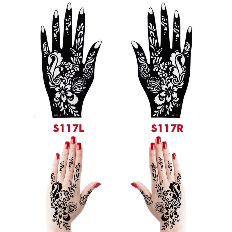 Трафарет для татуировок хной, 34 листа, 17 пар