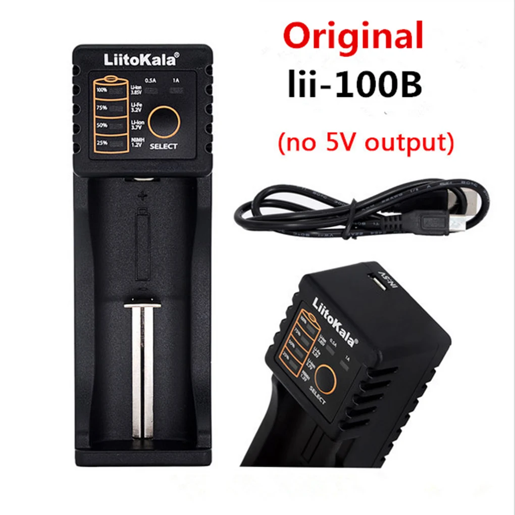 ОсобенностиУ вас есть разрядка, короткое замыкание, интеллектуальная идентификация батареи и обнаружение обратной защиты батареи.Режим зарядки U, постоянный ток и постоянное напряжение.U DC вход, зарядное устройство питания 5V-1A (микро головка).U Micro USB DC 5V вход, одиночный слот независимая зарядка и система управления.U доступен для 2 выбора заряда тока (500мА/1000мА).U светодиодный дисплей состояние зарядки 25% 50% 75% 100%.ОписаниеВходная мощность U: Micro USB DC 5V / 1A.U Выход напряжение: 4,2 V ± 1% / 5V.U выходной ток: 500 мА/1000 мА.U постоянное напряжение зарядки, Ток Отключения: <100 м A.U внешний источник питания ток в режиме ожидания: <15,0 М A.Совместимый аккумулятор: для Li-ion / IMR: 18650, 18490, 18350, 17670, 17500, 16340 (RCR123), 14500, 10440.Размер: 113 мм × 38 мм × 32 мм (длина/ширина/высота).Цвет: как показано на фотографии.Материал: пластик.Посылка включает в себя:1 * зарядное устройство Liitokala Lii-100B 18650 26650.1 * кабель.1 * руководство.