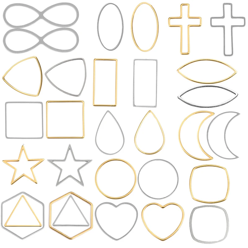 30 шт DIY Нержавеющаясталь серьги рамка золотого и серебряного цвета пустотелые геометрические круглый окантовка Кулоны из нержавеющей стали, подходит для изготовления ювелирных изделий