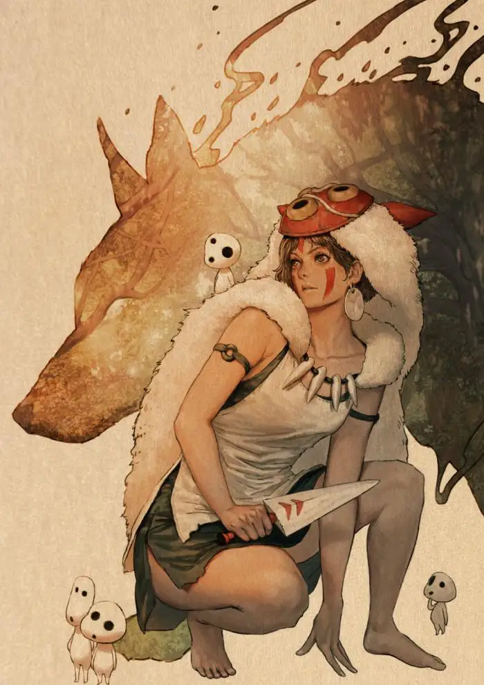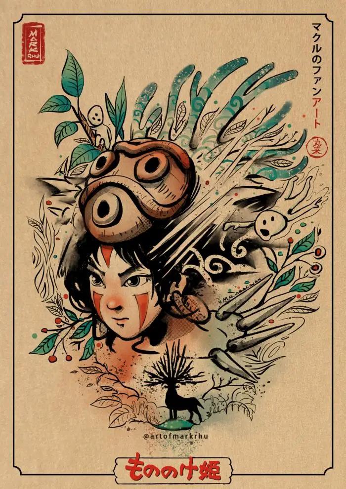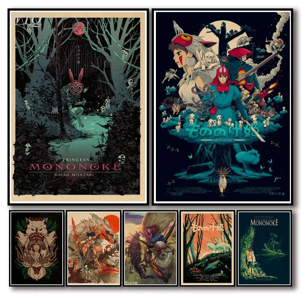 Постер в стиле ретро, постеры из фильма Принцесса Мононоке, постеры из аниме, Картина на холсте, Настенный декор, настенное искусство, картина, декор для комнаты, домашний декор icon star icon star icon star icon star icon star