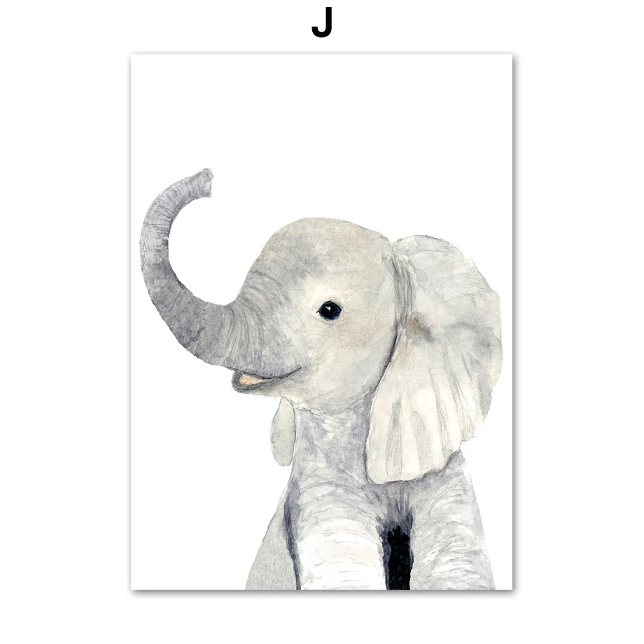 Милые животные Холст мультфильм плакаты детская Настенная картина Слон Тигр лев картина нордическая Детская Спальня Декор