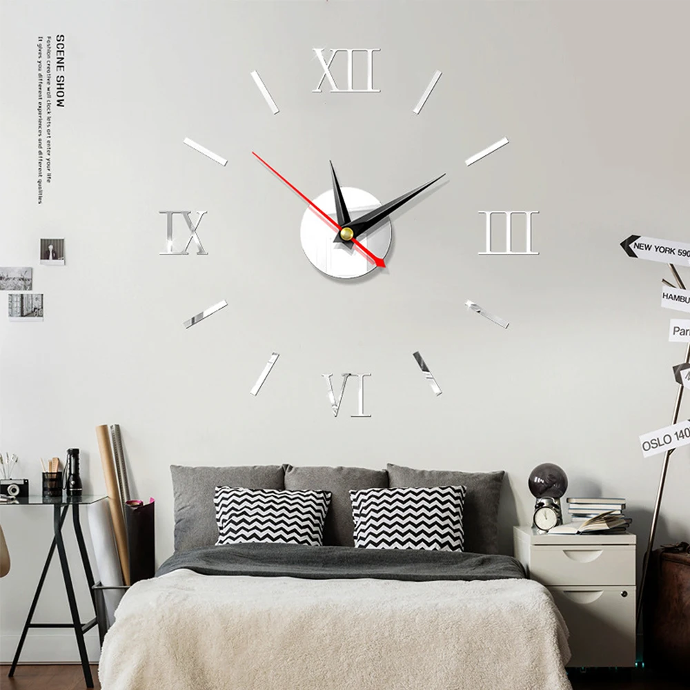 Большие настенные 3d-часы сделай сам, современные украшения для дома с зеркальной поверхностью, наклейка с римскими цифрами