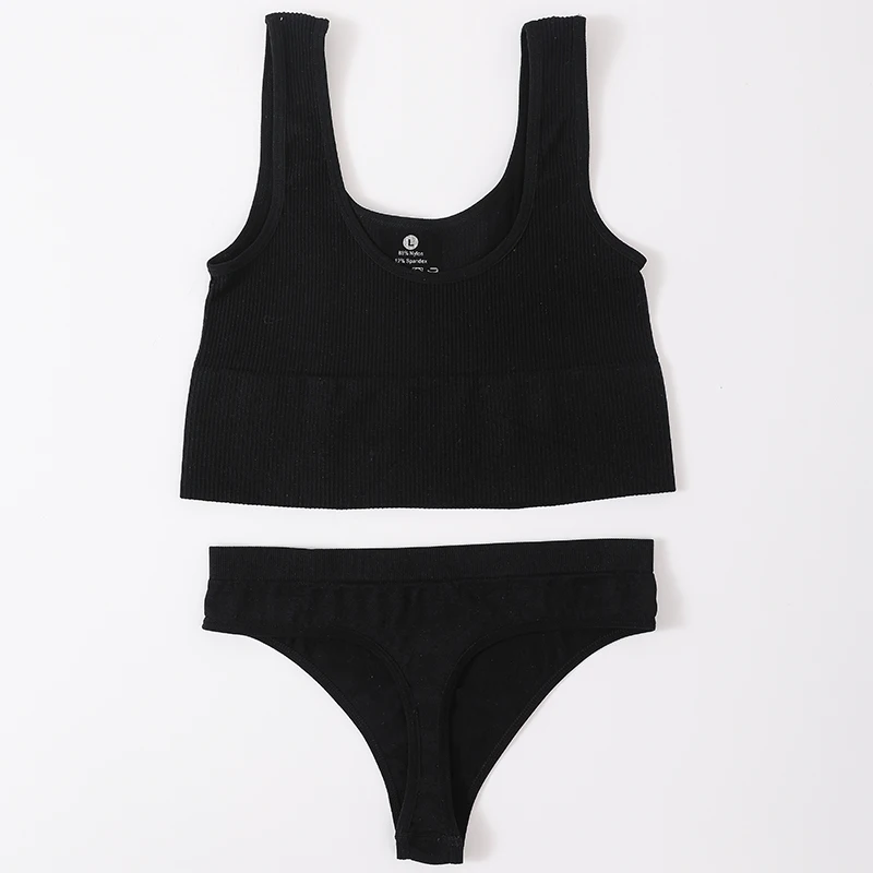 Бесшовный комплект с бюстгальтером, Женский бесшовный топ, укороченный топ для фитнеса, сексуальные стринги с высокой талией, бесшовное нижнее белье, удобная спортивная одежда, комплект нижнего белья