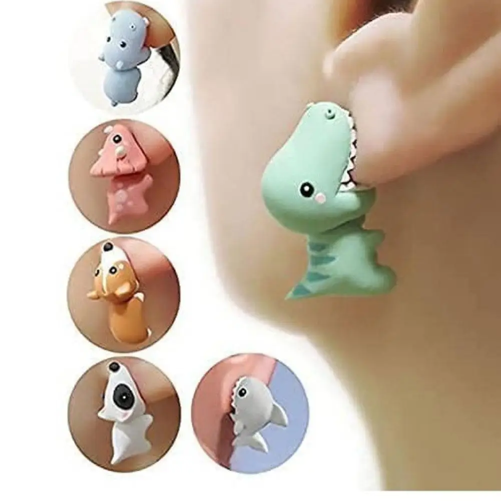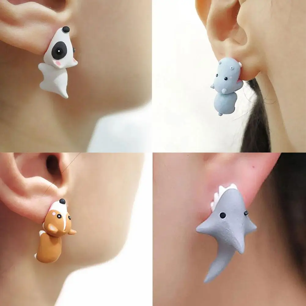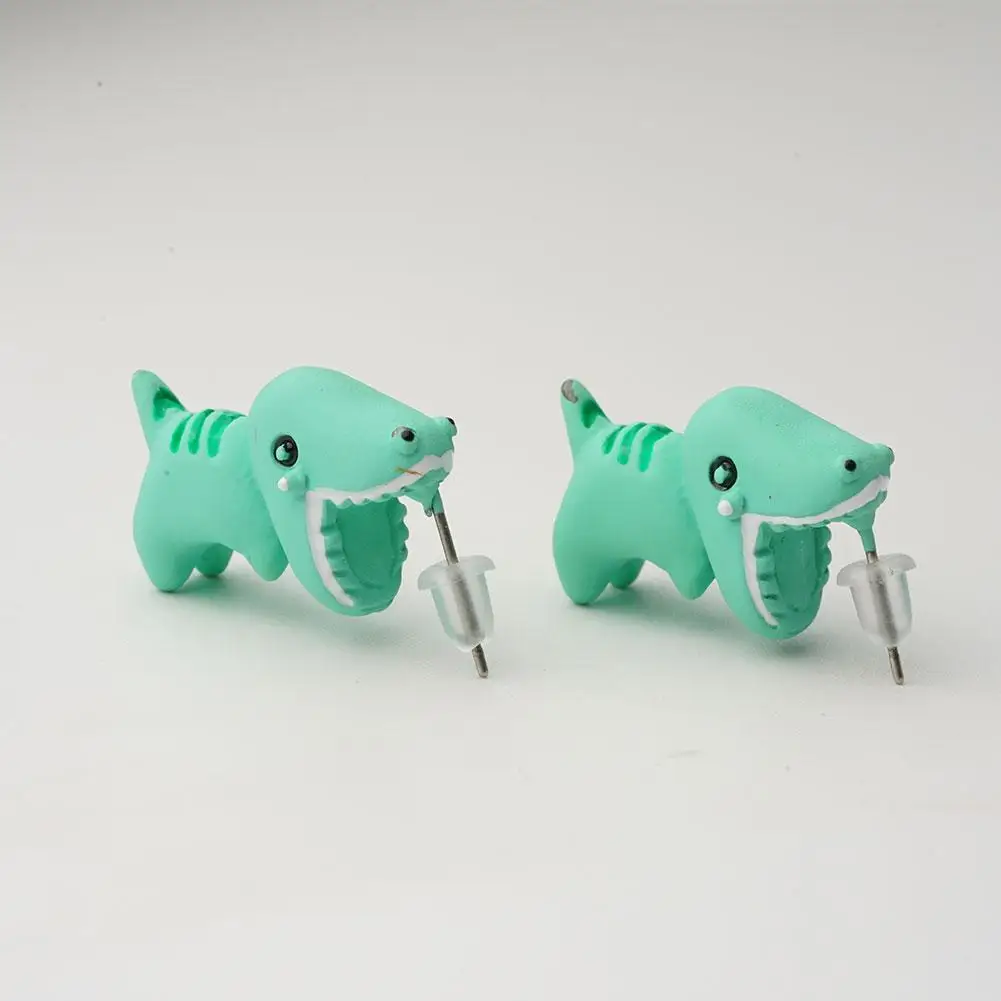Серьги с динозаврами милые 3D Животные Акула серьги-гвоздики в виде собаки для женщин, девочек, подарок на день рождения, прекрасные индивидуальные украшения вечерние