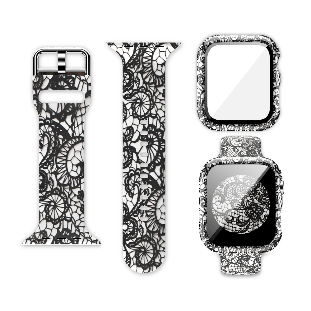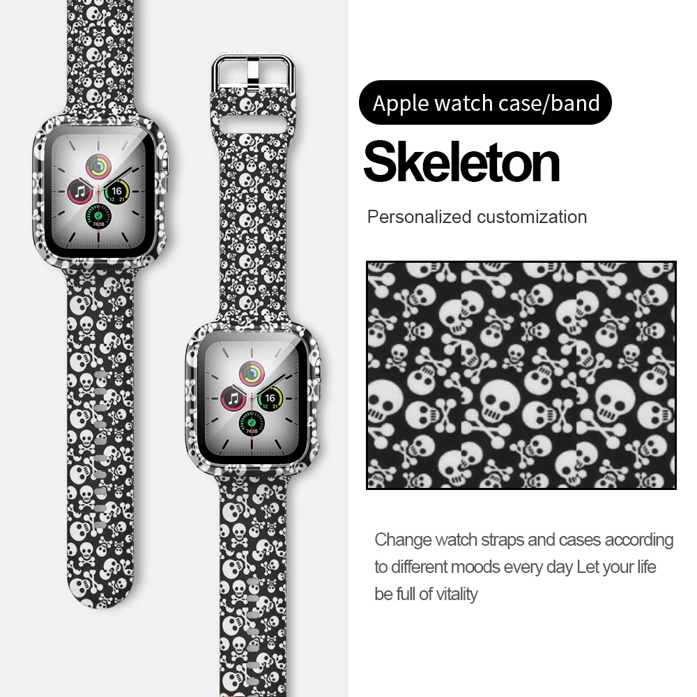 Силиконовый ремешок и чехол для часов Apple Watch 6 5 4 SE 44 мм 40 мм, удобный сменный ремешок с принтом для iwatch 3 2 1 38 мм 42 мм, ремешок