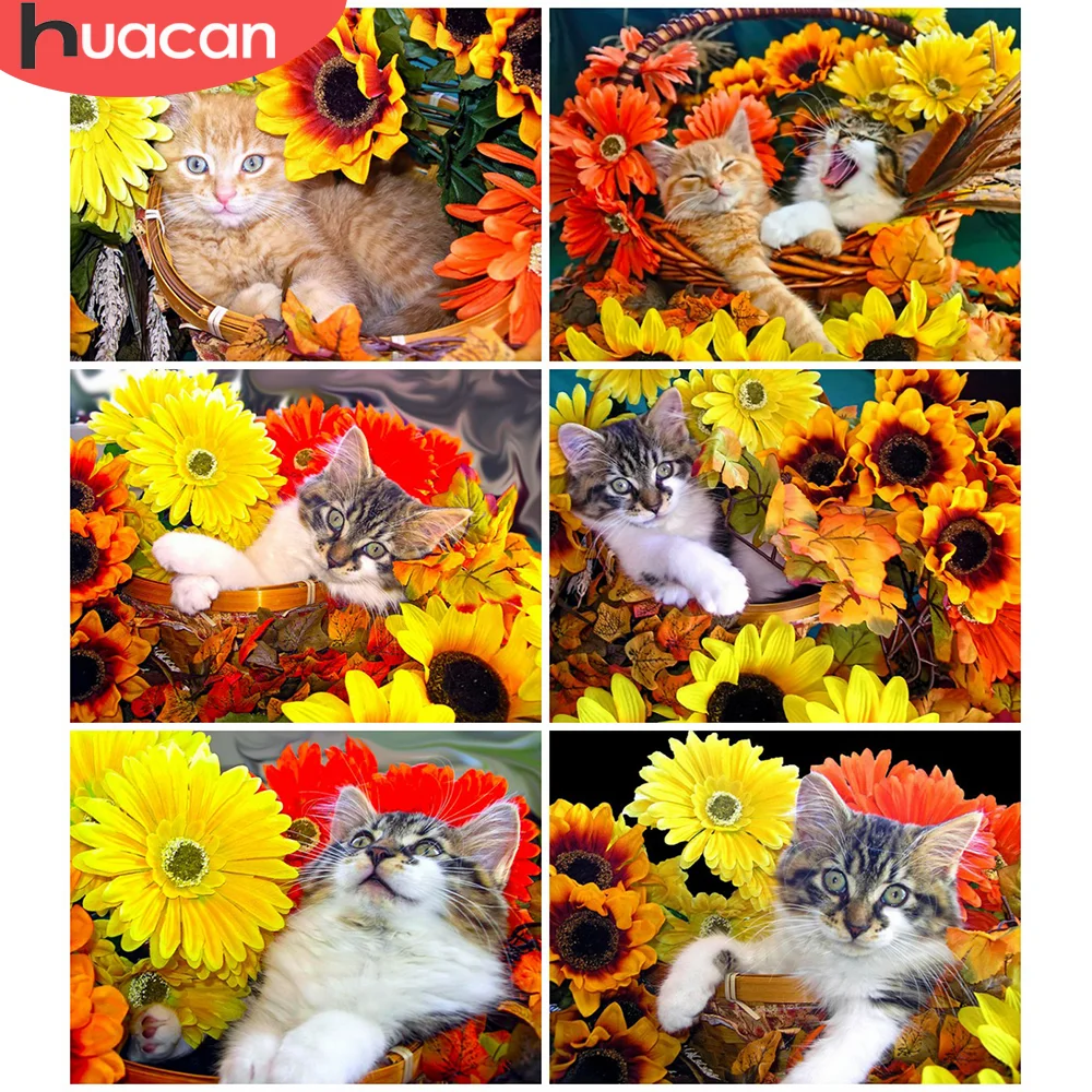 HUACAN полностью квадратнаякруглая Алмазная картина Маргаритка Алмазная вышивка Продажа животное кошка Стразы мозаика крестиком Декорация