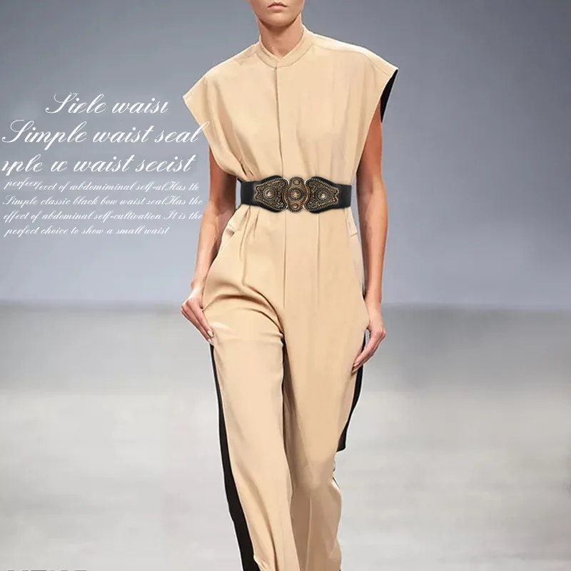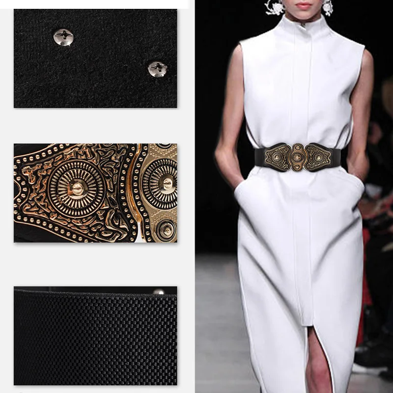 Пояс женский эластичный в стиле ретро, элегантный модный винтажный кожаный пояс для подиума, большие ремни для платья, аксессуары для одежды