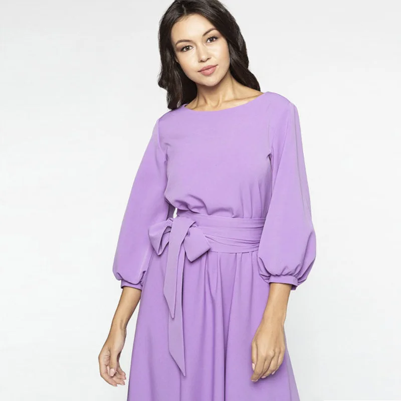 Женское длинное винтажное платье, розовое элегантное платье с длинным рукавом-фонариком и круглым вырезом, с галстуком-бабочкой, осень 2021