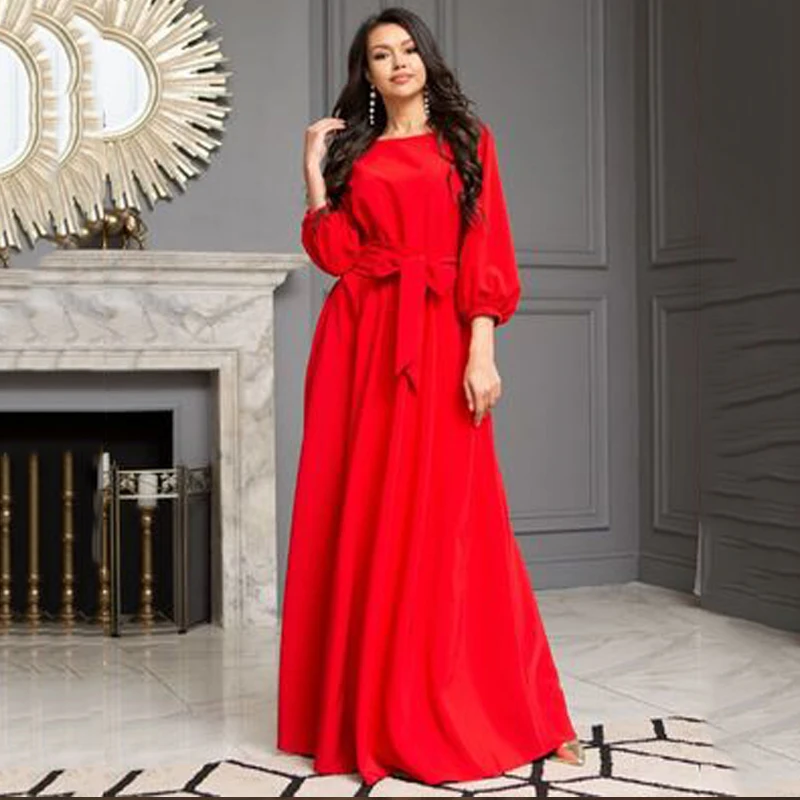 Женское платье до пола, однотонное зеленое платье макси с бантом и ...