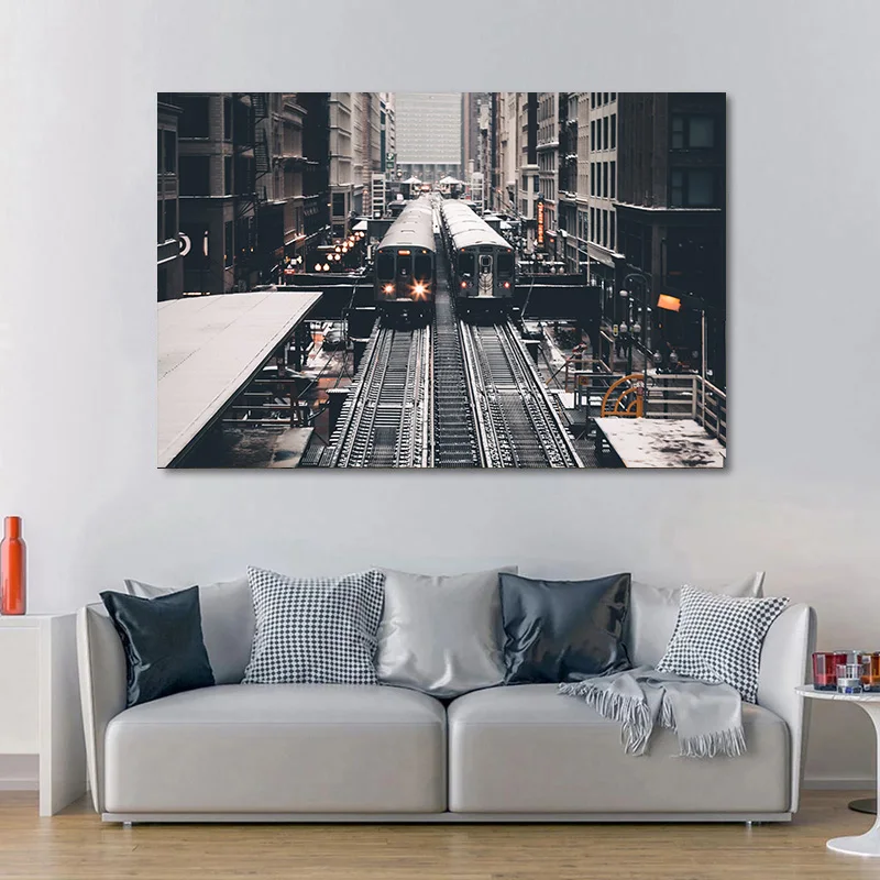 Ретро-постер в скандинавском стиле, паровоз, черно-белый холст, мебель для детской комнаты, домашняя живопись красным поездом, железной дорогой, картина маслом