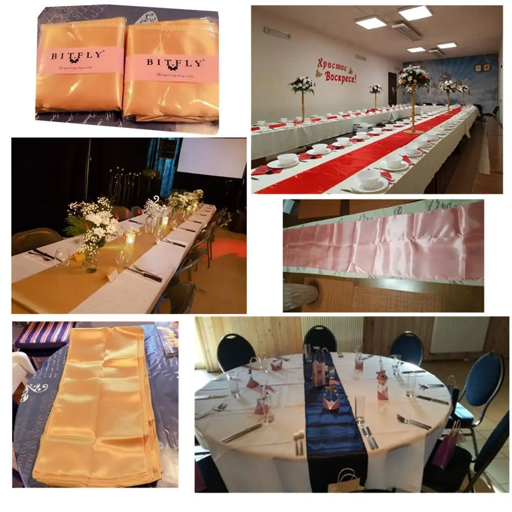 Комплектация: 10 шт. атласные настольные дорожки 12 "x 108" Количество для свадьбы: 1 шт. Материал: сатин Размер: 12 ''(около 30 см) X 108'' (около 275 см) Особенности: Повод: День рождения, юбилей, вечеринка, свадьба и помолвка, свадьба