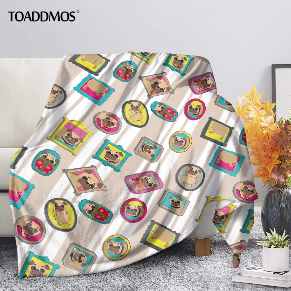 TOADDMOS изображением симпатичного мопса или печати из мягкой флисовой ткани, Одеяло для взрослых и детей комфортная кровать тонкий стеганное одеяло для дивана теплые Одеяло домой постельные принадлежности Манта