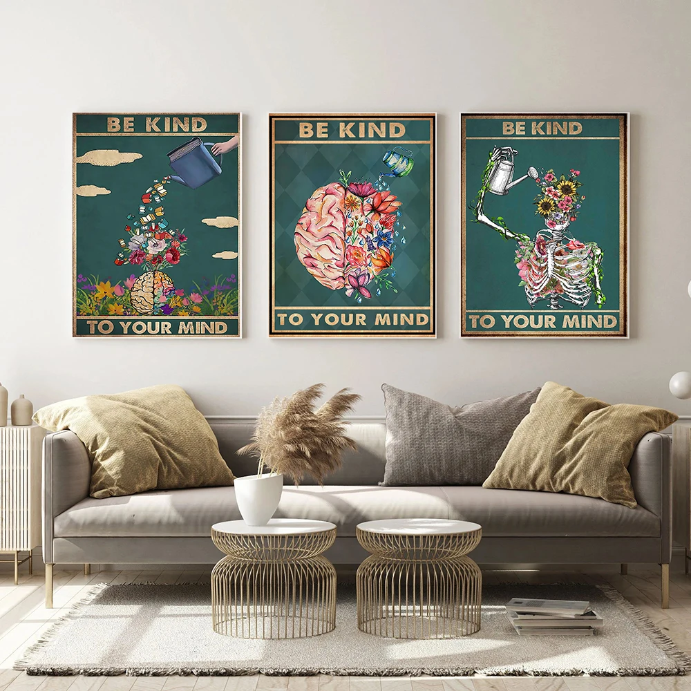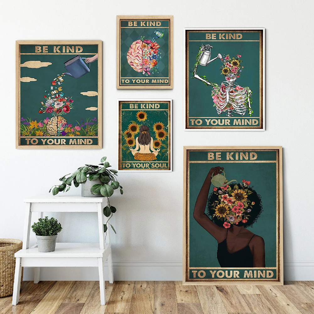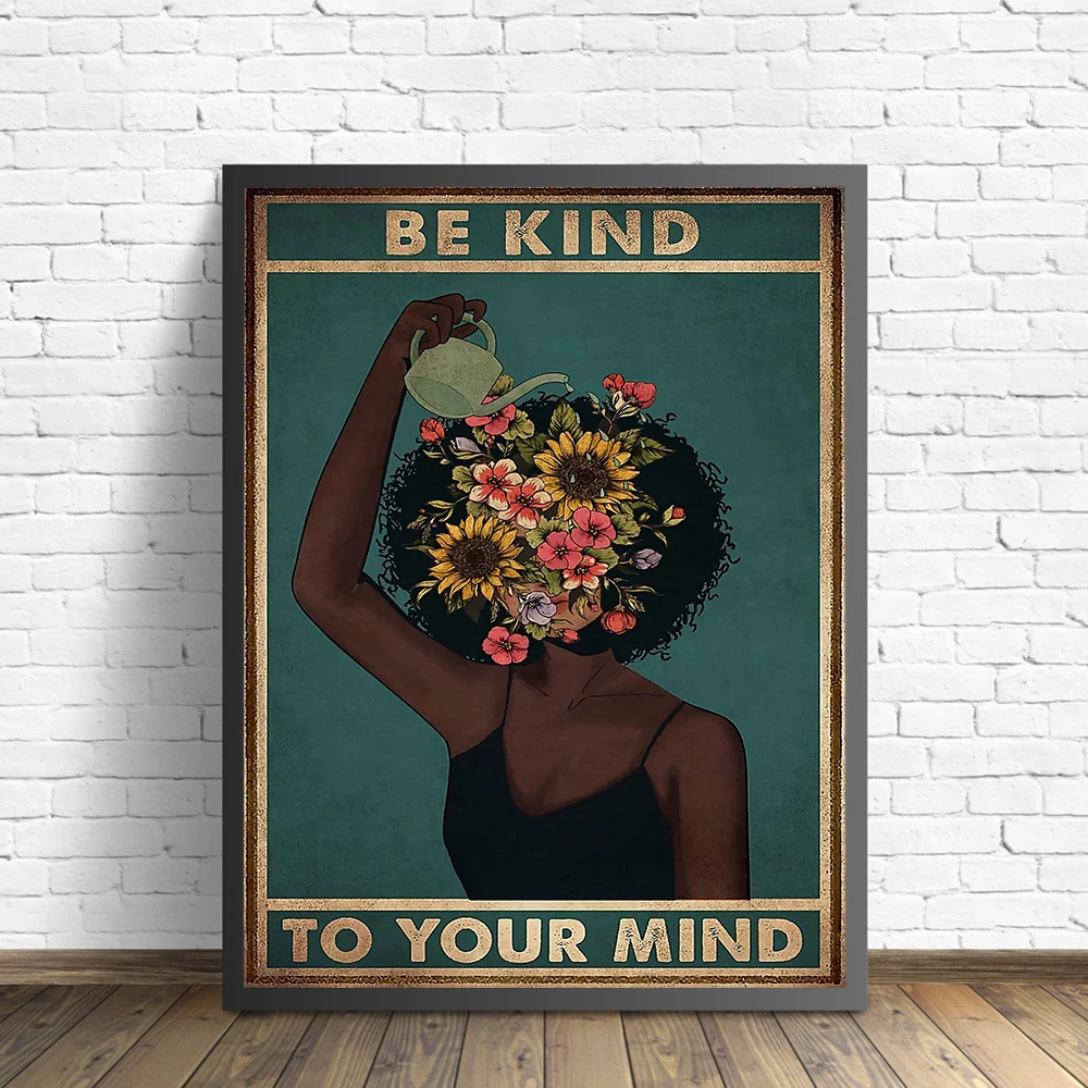 Настенная картина черная девушка, холст, плакаты, ментальные, будьте добры к своему разуму, положительные принты, Африканская женщина, винтажное украшение для дома