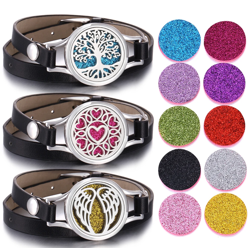 Браслеты с украшениями для ароматерапии, крылья дерева, диффузор эфирного масла, многослойный кожаный браслет, Прямая поставка