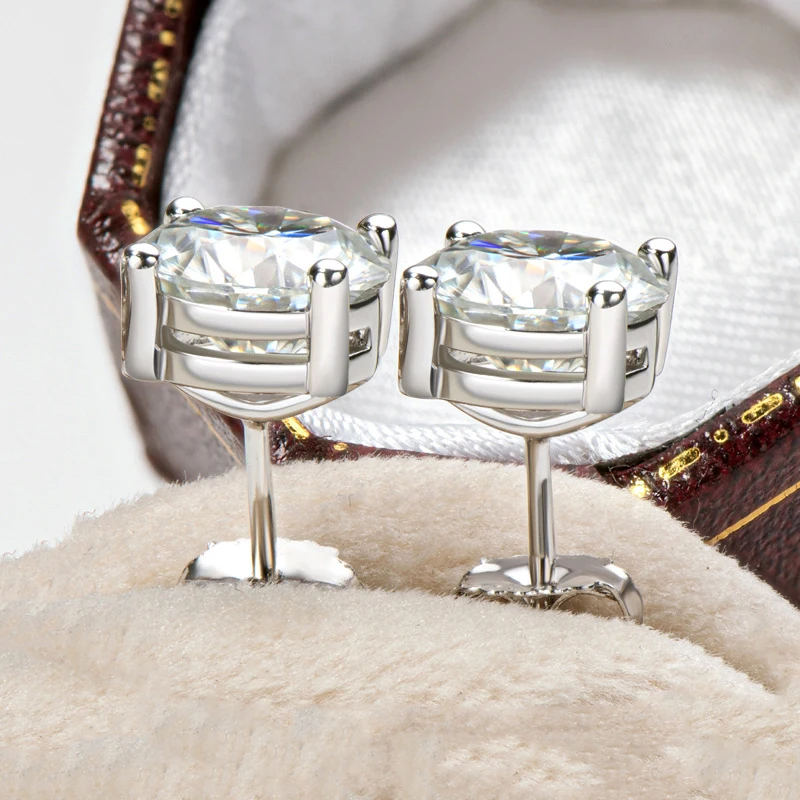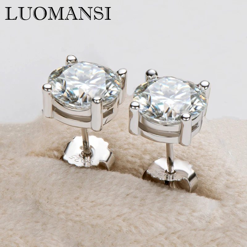 Серьги-подвески Luomansi из серебра 100% пробы, 2 карата, 8 мм, серьги-гвоздики с муассанитом пробы, с сертификатом