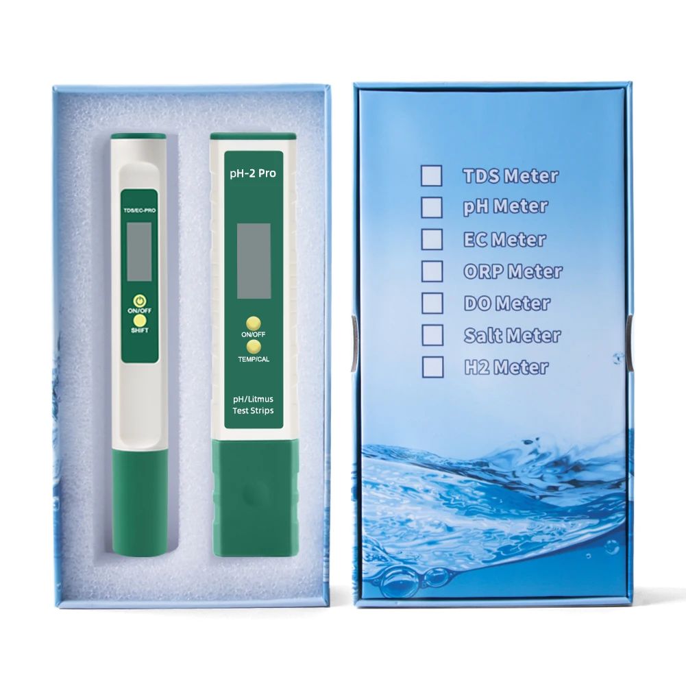 YY-200B + PH-2PLUSBПосылка включает:1*3 в 1 TDS EC TEMP Meter (батарейки в комплект не входят)1 * PH-2Plus pH метр (батарейки в комплект не входят)3 * пакеты буферный порошок1 * Руководство по эксплуатации