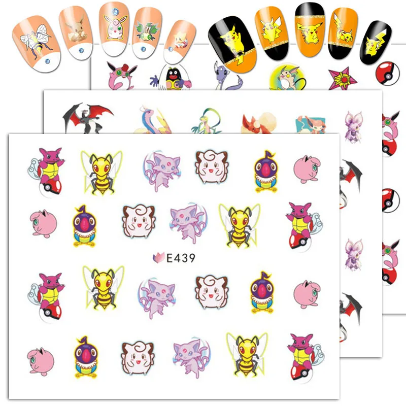 Оригинальные 3D наклейки для ногтей в виде покемона, Пикачу, Детские Рождественские подарки для девочек, наклейки для маникюра, аксессуары, декоративные игрушки