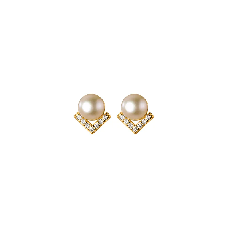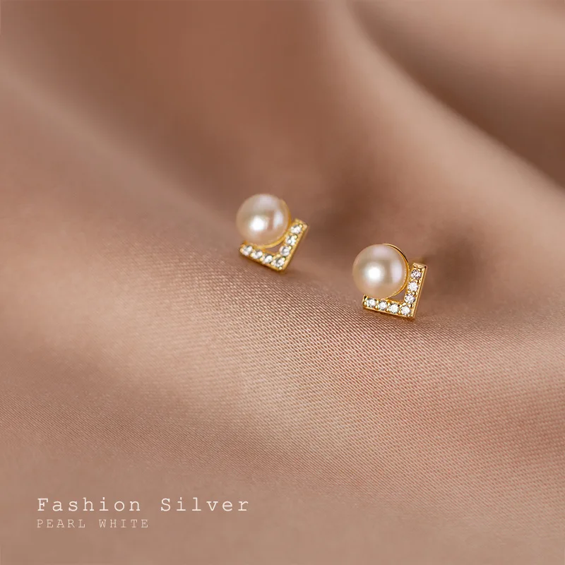 WANTME 925 стерлингового серебра уникальный Циркон с геометрическими буквами V жемчужные серьги-гвоздики для женщин очаровательные Классические Вечерние пирсинг ювелирные изделия