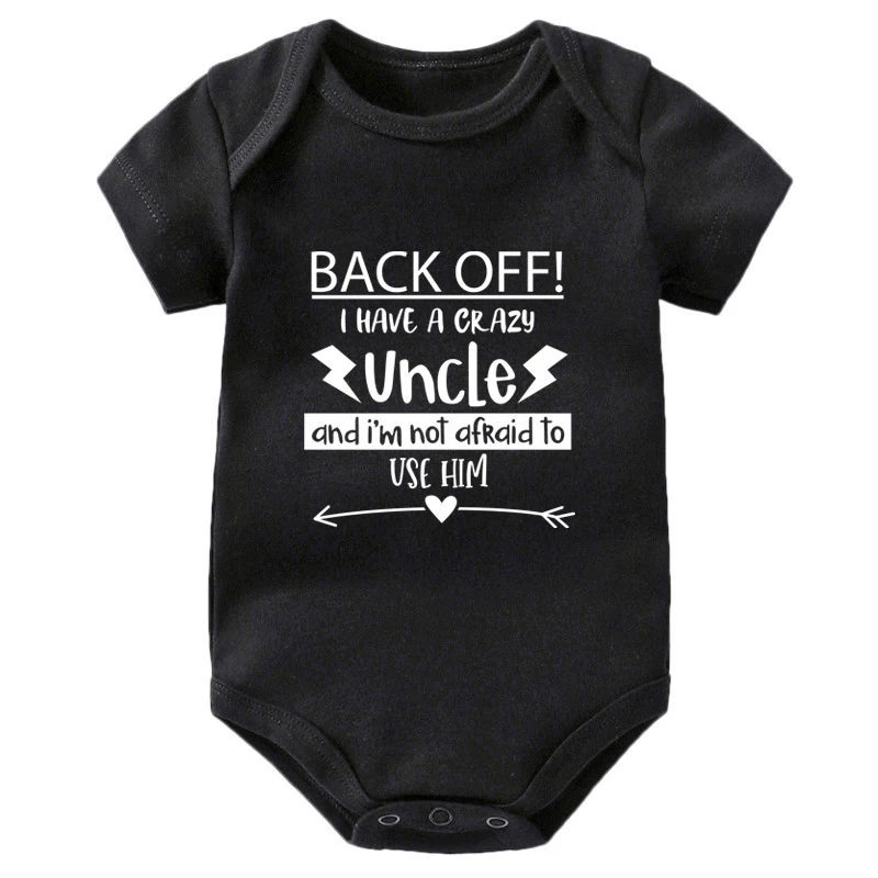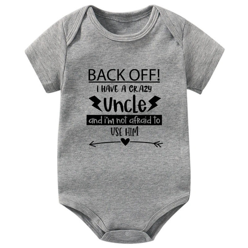 Сзади у меня с ума дядя с принтами для маленьких детей; Комбинезоны для девочек и мальчиков хлопковая футболка с короткими рукавами, Детский костюм для новорожденных, комбинезон, одежда