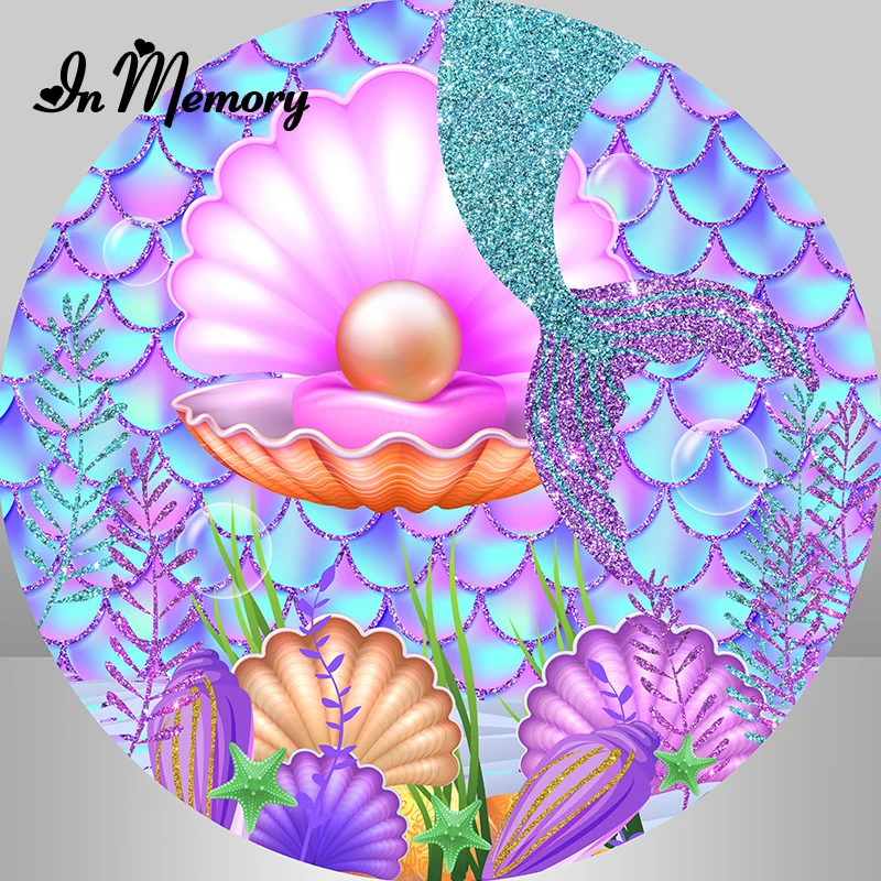 Фон для фотосъемки с изображением круга русалки фиолетового блеска мишуры принцессы Девочки День Рождения новорожденного малыша
