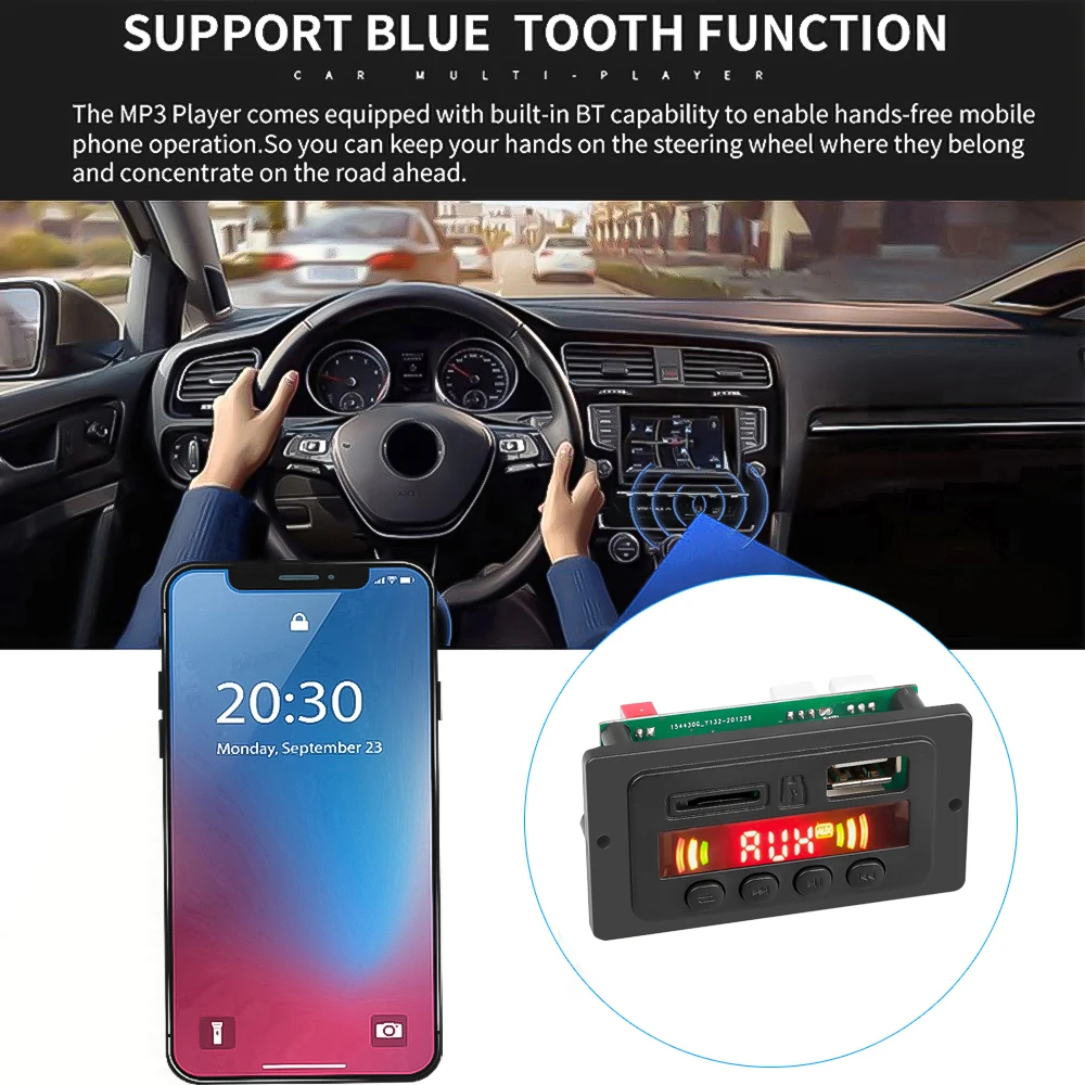 Поддержка функции: поддержка MP3/USB/TF/LINE IN/FM/BLUETOOTH/дистанционное управление/DC 5 В или 12 В (опционально)