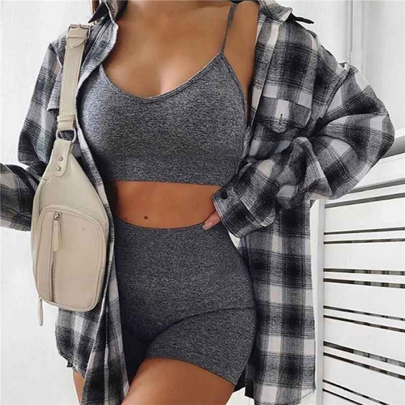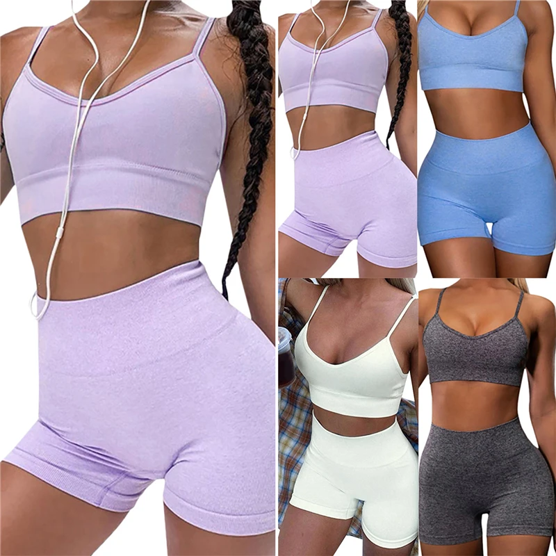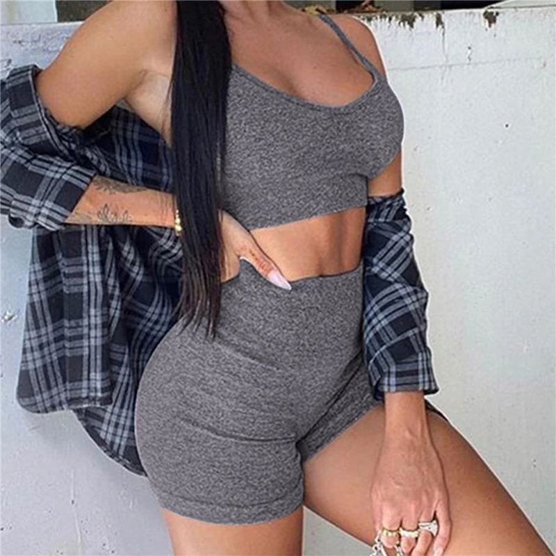2021 для женщин, комплект из 2 предметов, костюм для йоги Новое поступление без рукавов на бретельках для тренировок и занятий в спортзале, для бега спортивный бюстгальтер-стрейч одежда для девочки, жилет шорты женский спортивный комплект