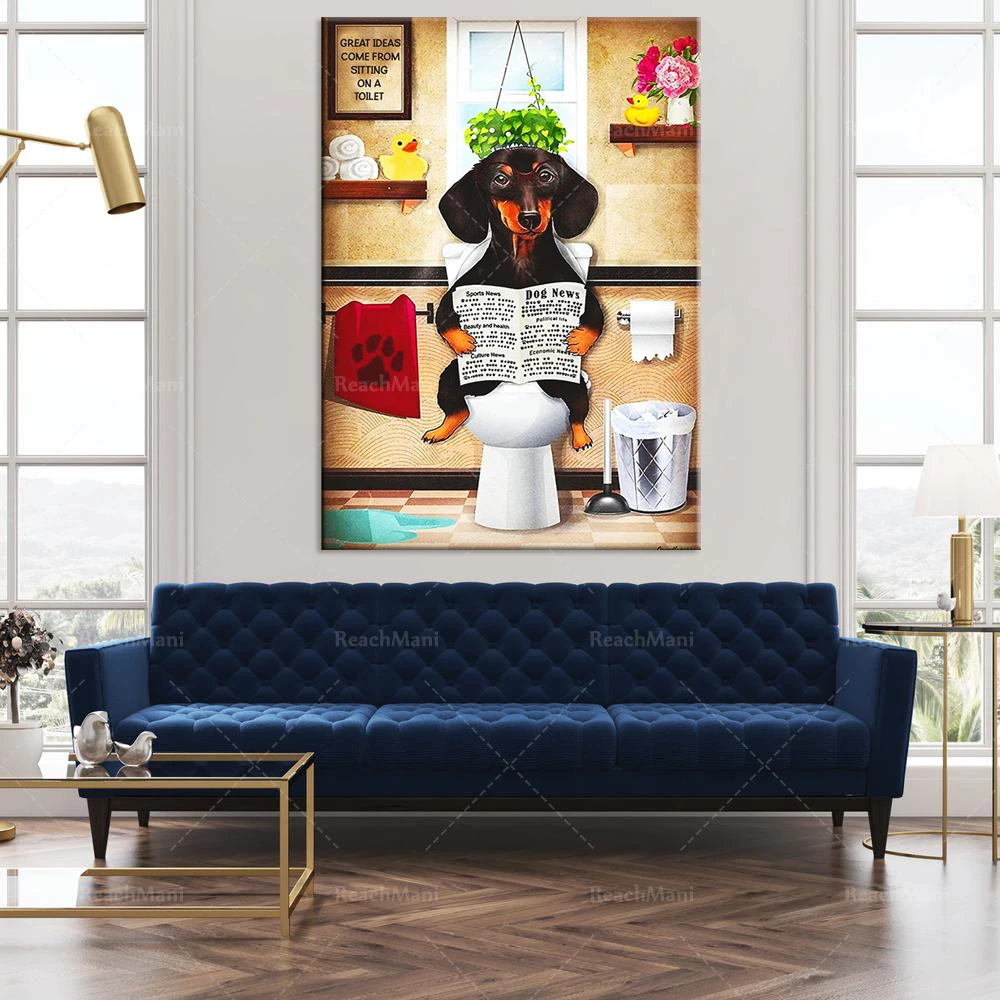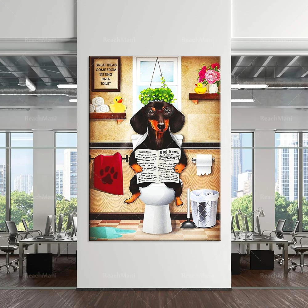 Постер для ухода за собаками, подарок для влюбленных собак, постер для ванной комнаты, постер с животными, постер с газетами для чтения собак, постер с собакой таксой, постер с собакой