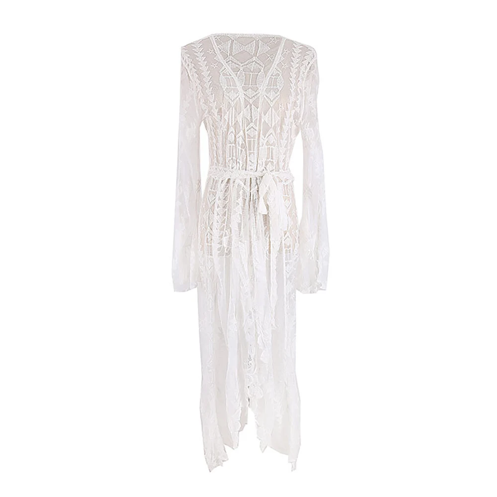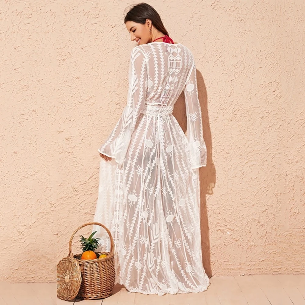 Летняя Сексуальная накидка на бикини 2022, асимметричный подол, женский купальник с вышивкой, накидка, Сетчатое удлиненное кимоно, Пляжная накидка