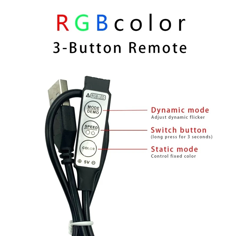 Светодиодная ленсветильник RGB, RGB-подсветка, 3 кнопки, питание от USB, 5 в постоянного тока