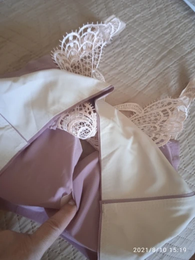 Очень нежный, красивый цвет. Кружево красиво смотрится. Спинка сделана хорошо. К телу приятный. Продавец быстро отправил заказ. Трек отслеживался. Быстрая доставка. Мне нравится